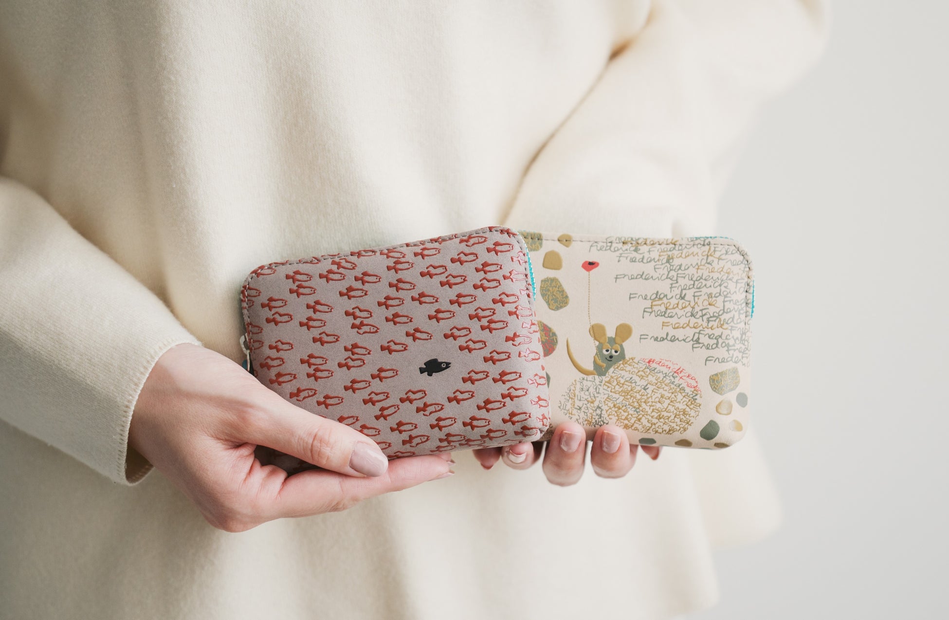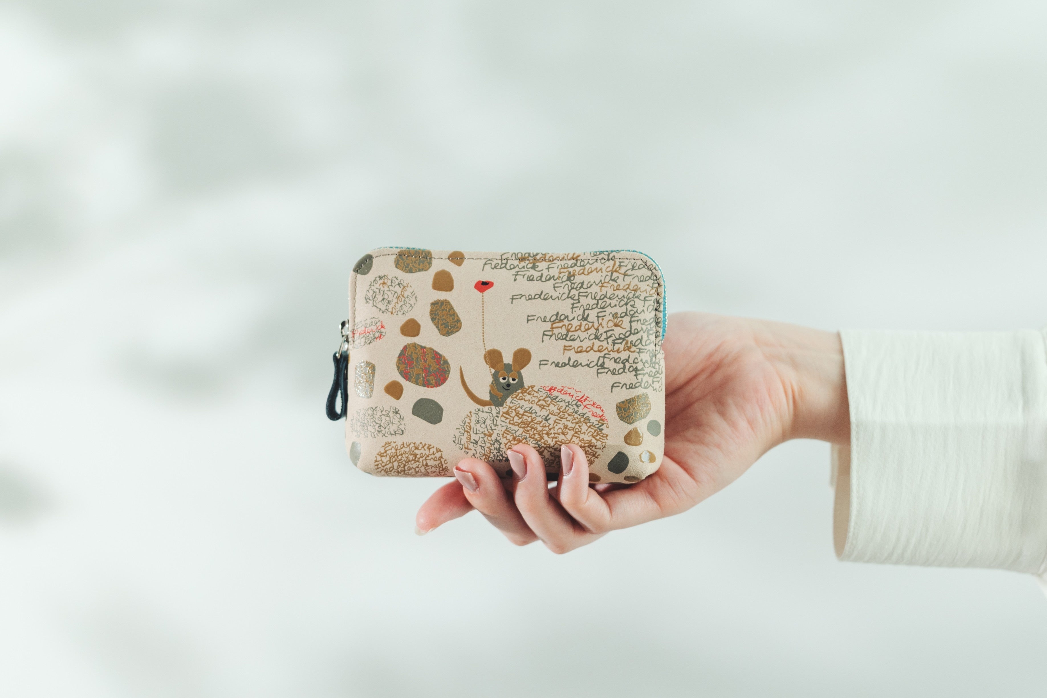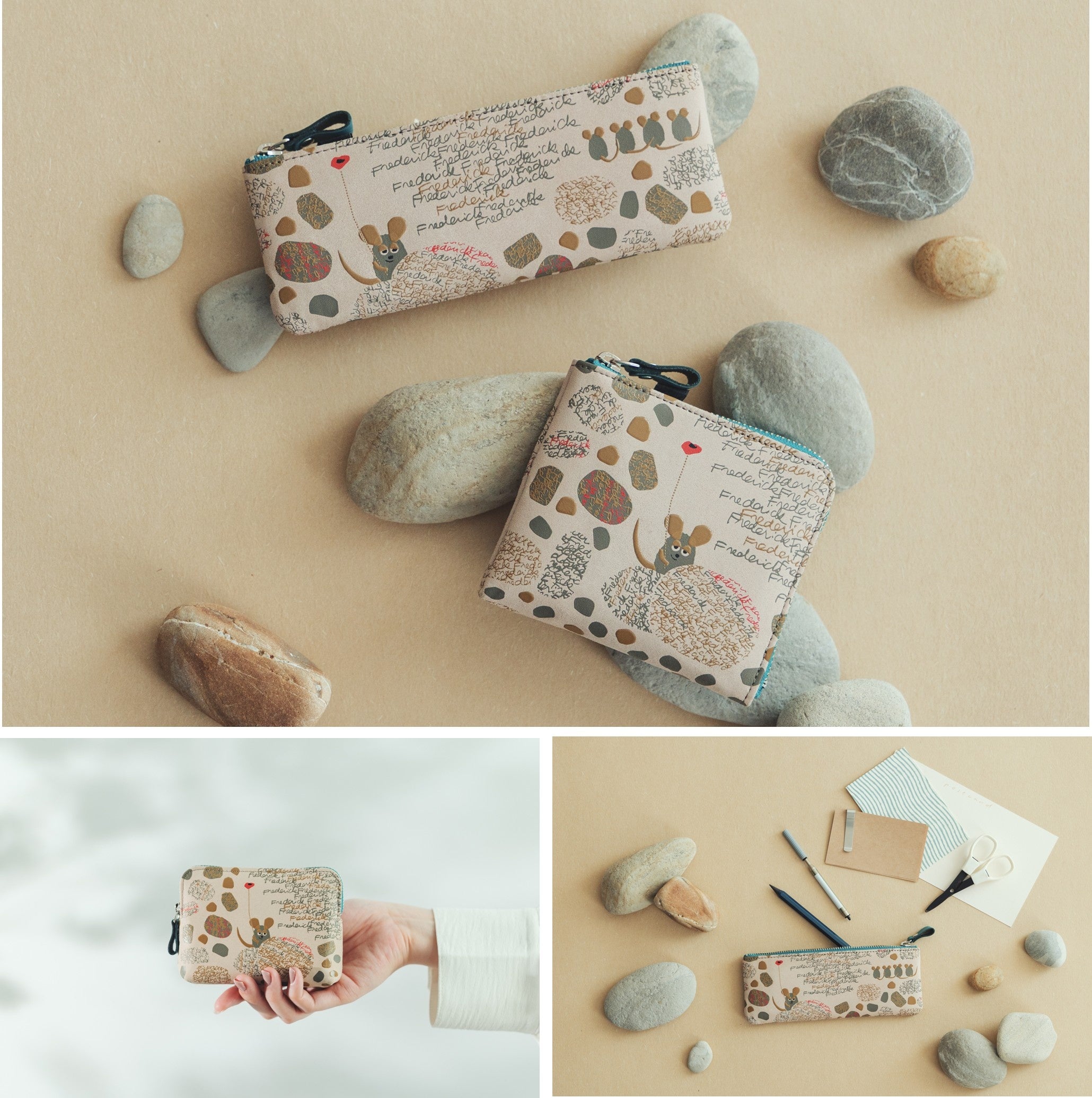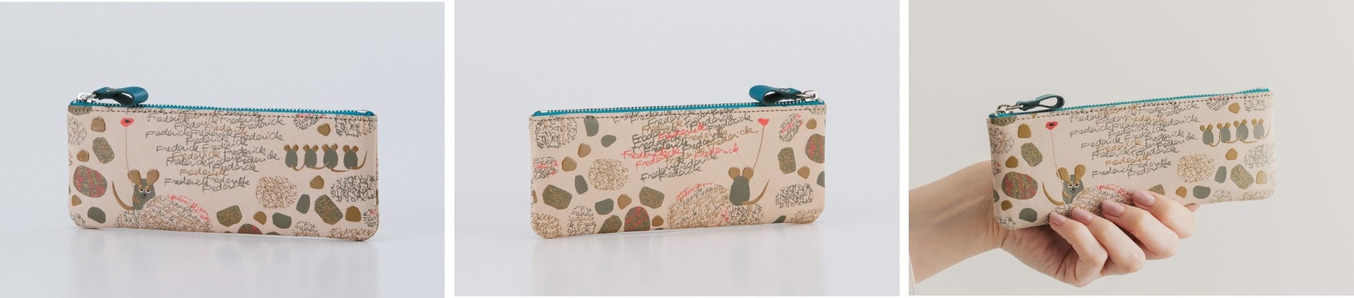 レオ・レオニ『フレデリック』×伝統工芸品「甲州印伝」創業1582年の印傳屋が描いた「絵本作品コレクション」第2弾。愛らしい後ろ姿もポイント!「財布」「ポーチ」「ペンケース」など全7種類。