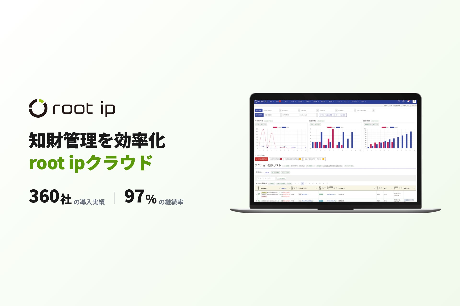 root ipクラウドとNGBの年金管理サービスは、これまで案件移管データの連携により、知財管理システムから年金管理サービスへのスムーズなデータ移行を実現してきました。