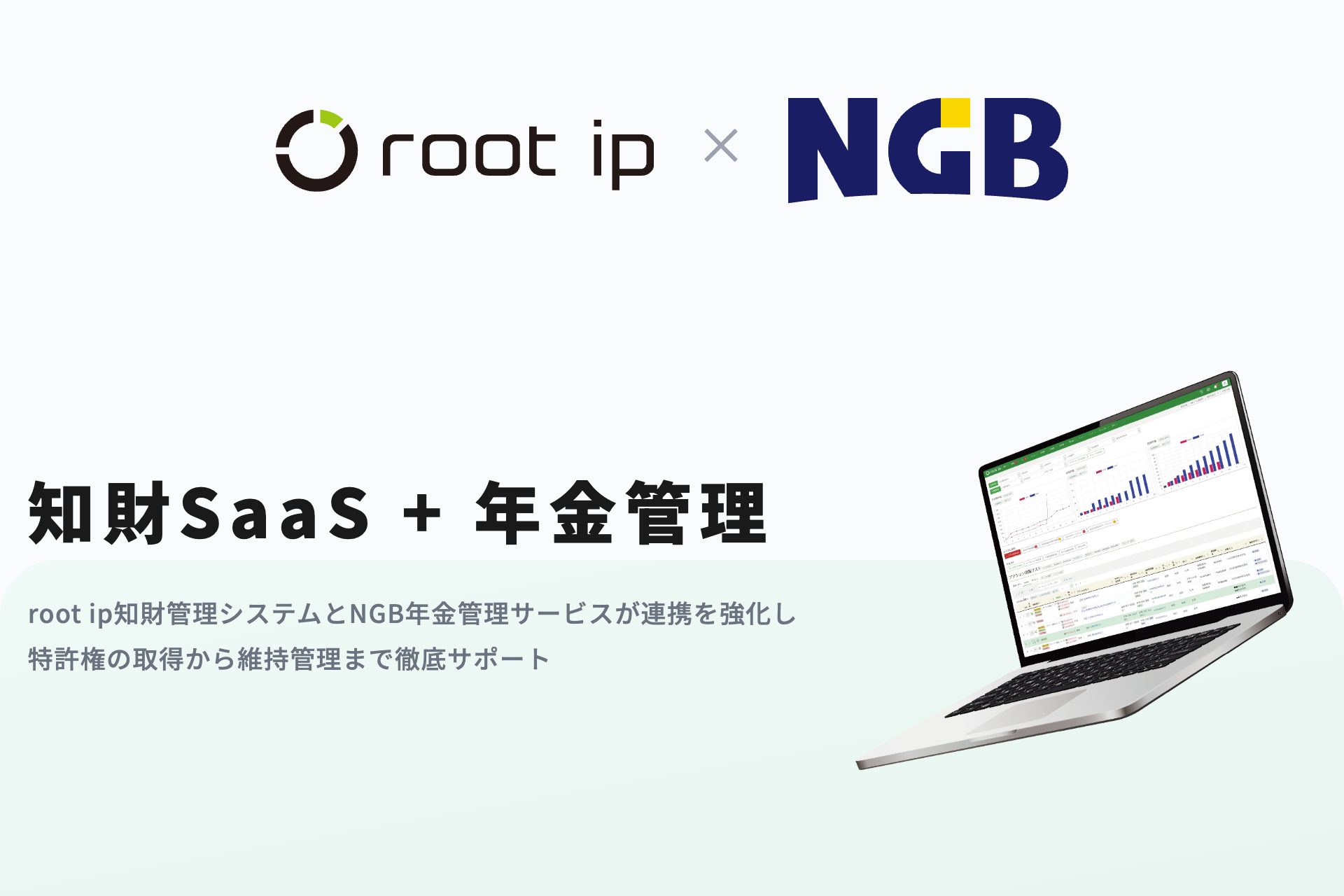 知財管理「root ipクラウド」とNGB年金管理サービスが連携強化― 特許権取得から維持管理までを一気通貫で効率化 ―