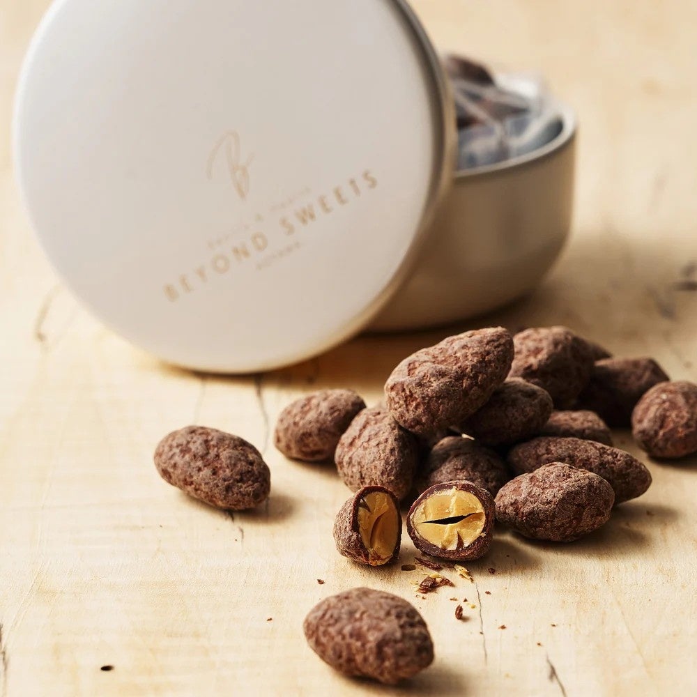 厳選した高品質なカカオと羅漢果(らかんか)という果実からとれる天然の甘味料を合わせた自家製チョコレートに、香ばしくしっかりとローストしたアーモンドを合わせたカリっと香ばしくて甘い低糖質・低GIチョコレートです。