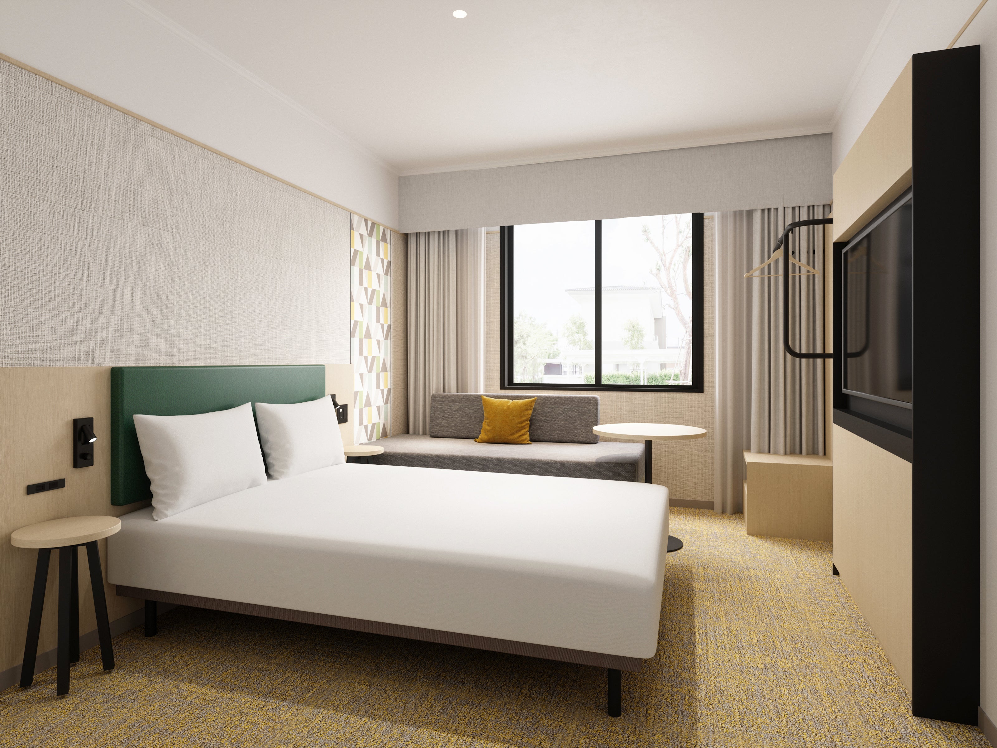 「ANAホリデイ・イン神戸三田」の客室は全130室。「ホリデイ・イン」ならではのデザインとサービスを取り入れ、快適性と洗練性を兼ね備えた空間へと刷新いたします。さらに、ブランドの象徴である「オープンロビー」コンセプトを導入し、ビジネスから観光まで、さまざまなシーンでご利用いただける、寛ぎと利便性を兼ね備えたホテルとして生まれ変わります。