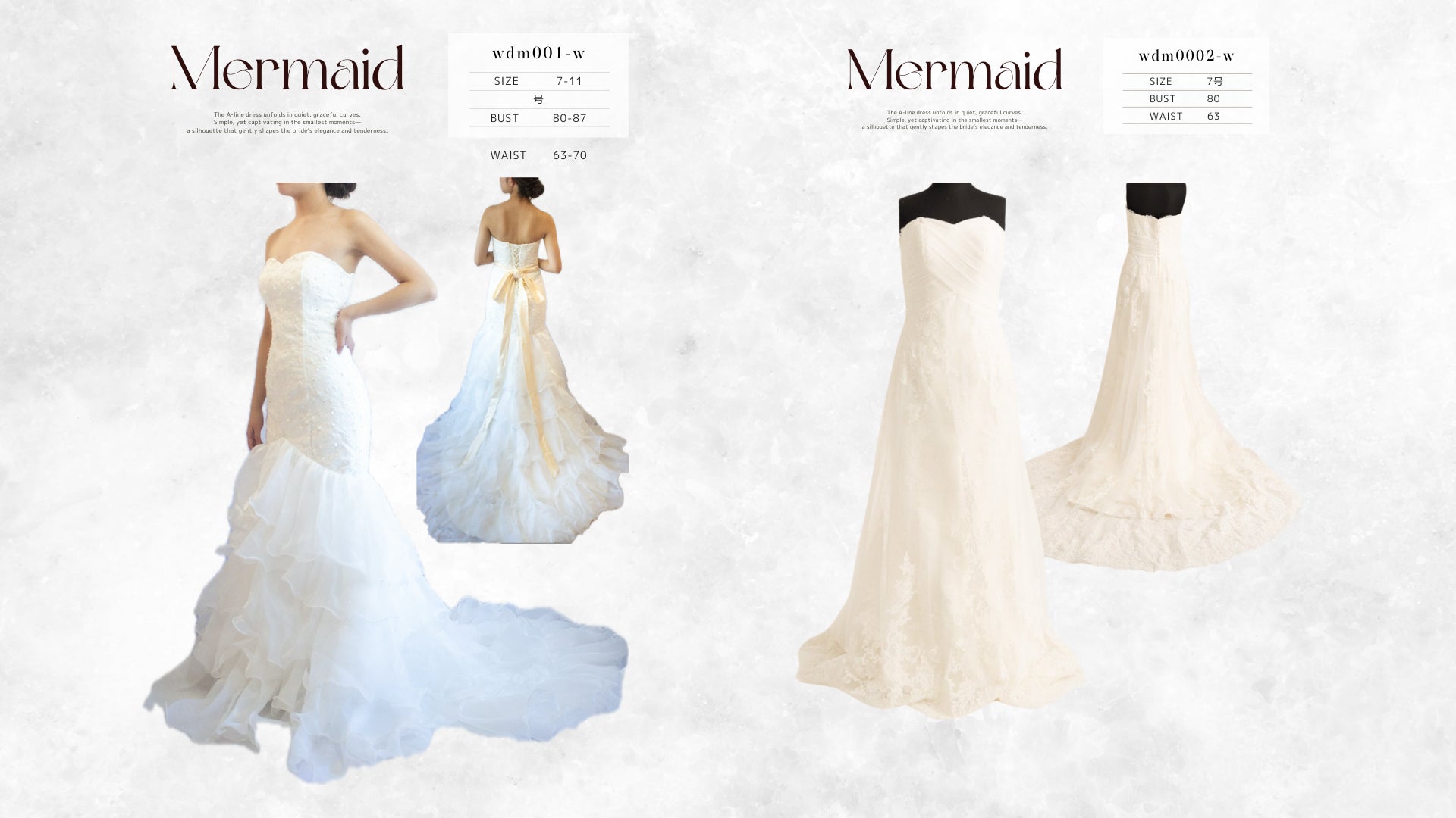 本コレクションでは、Aライン、プリンセスライン、マーメイドラインを中心に、シンプルで上品なデザインから写真映えを意識したものまで、幅広いドレスを取り揃えています。