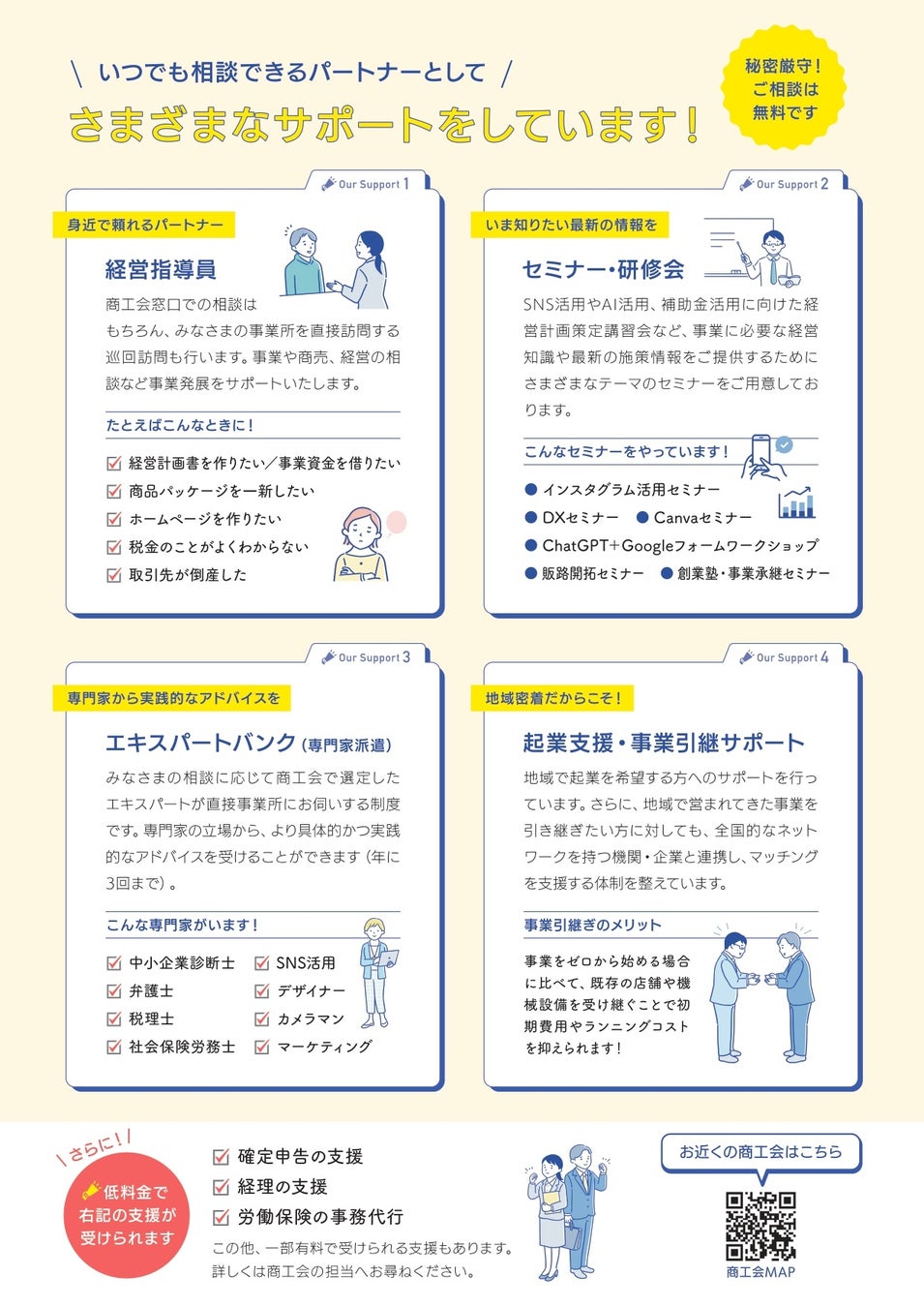 商工会エリア内で事業を営む方であればどなたでもご入会できます。この機会にぜひ、最寄りの商工会にご入会ください。