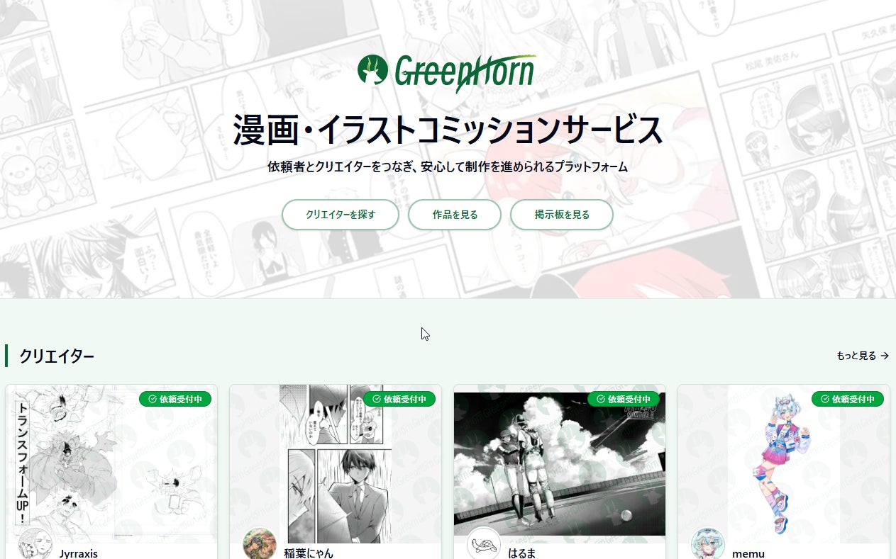 株式会社同人(本社:大阪府東大阪市、代表取締役:大前秀人)は、漫画制作に特化したコミッションサービス「GreenHorn(グリーンホーン)」を、2026年4月4日にリリースしました。