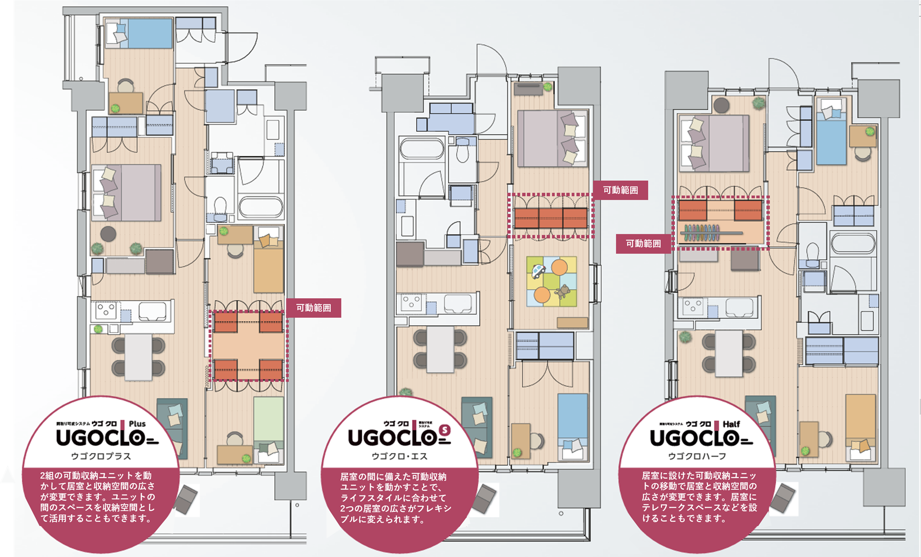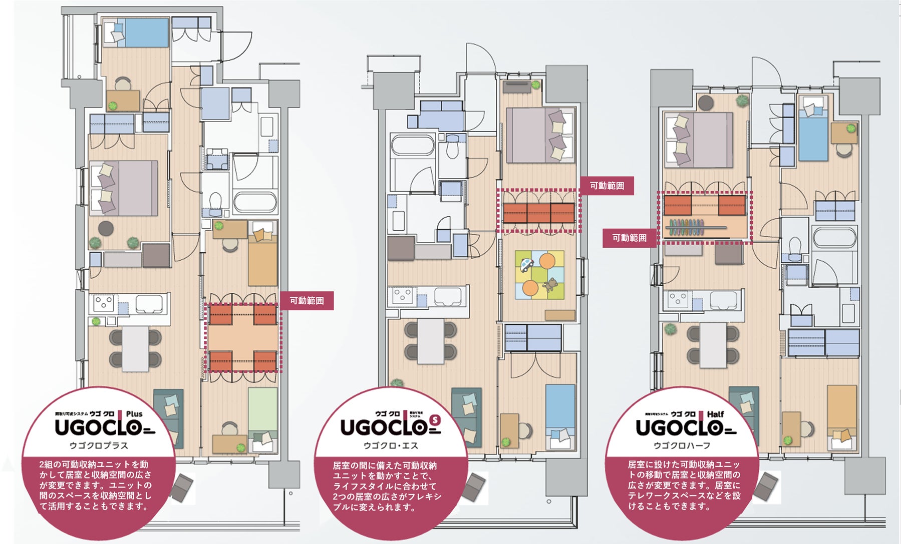 ■可動収納ユニット「UGOCLO(ウゴクロ)」を全住戸に採用