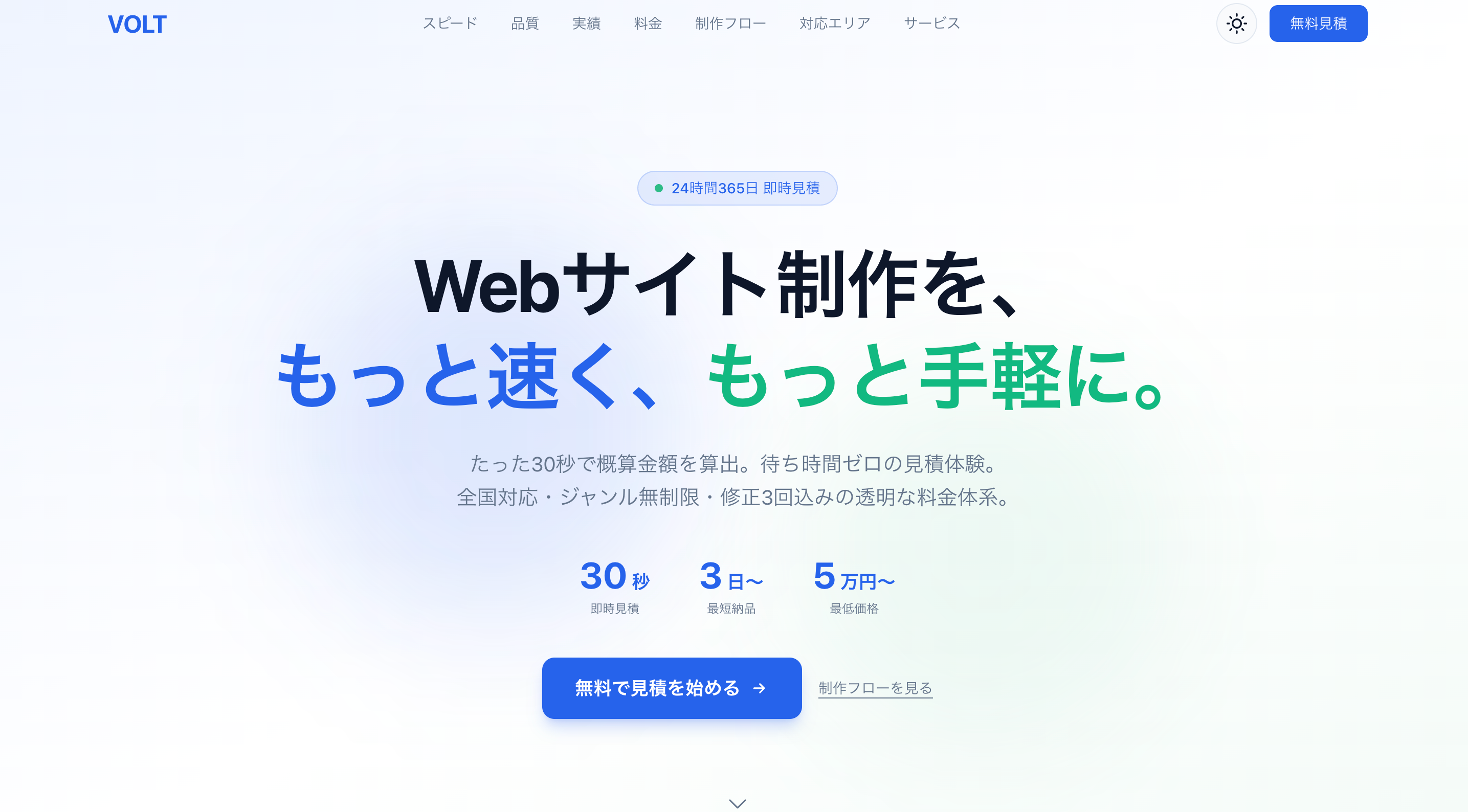 打ち合わせ不要、5万円からのWeb制作サービス「VOLT」提供開始
