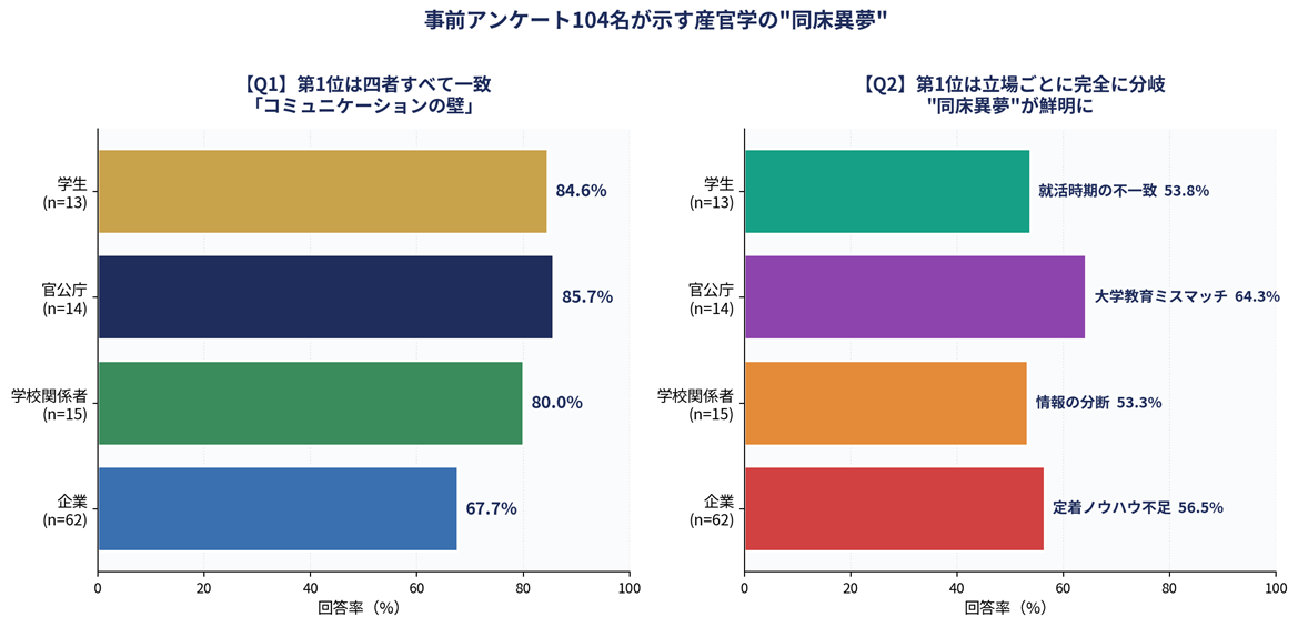 ■ 事前調査104名で判明した産官学の"同床異夢"