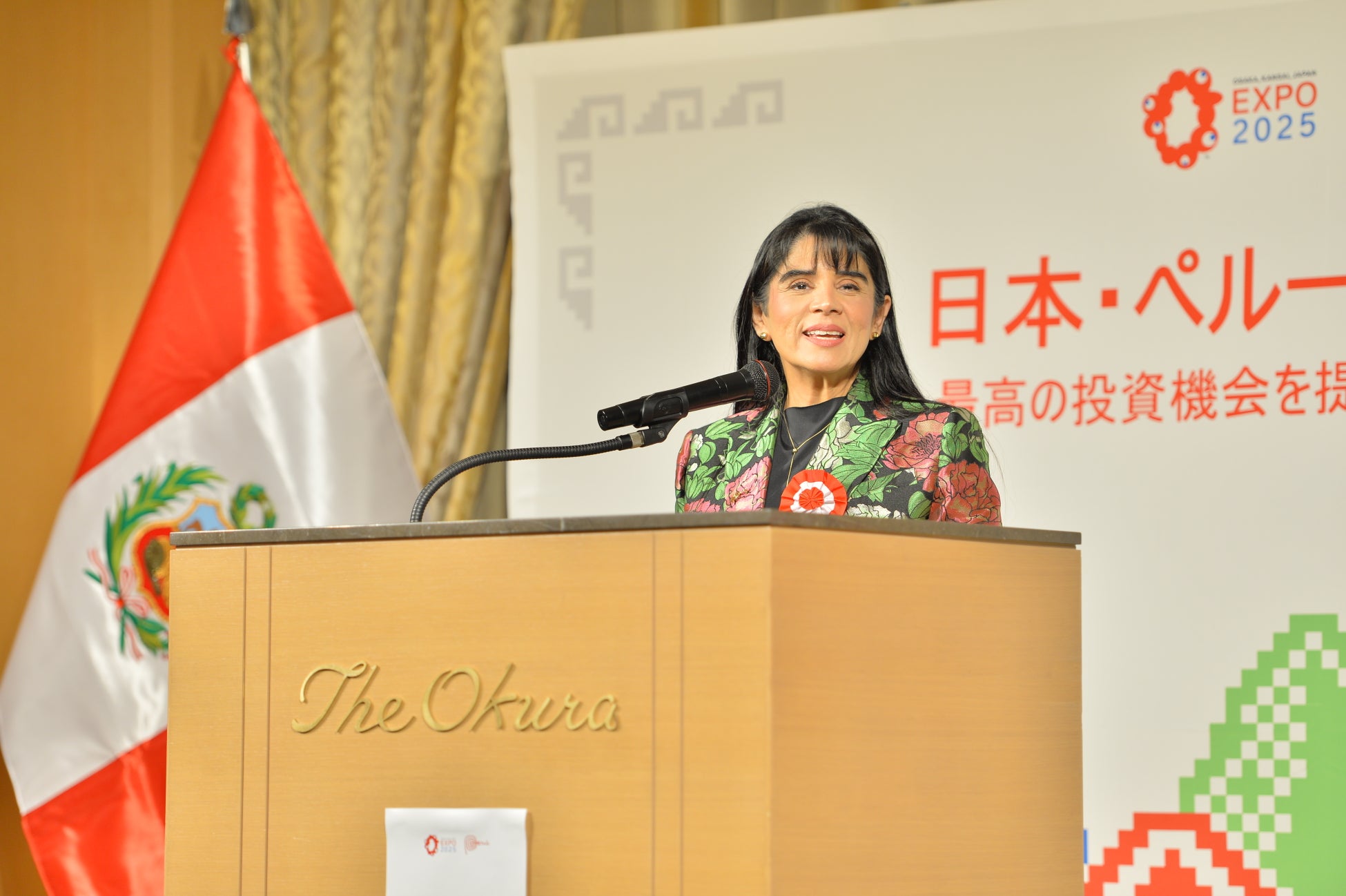 セミナーは、ウルスラ・レオン ペルー通商観光大臣(以下、大臣)のスピーチで幕を開けました。「ペルーは、安定した経済環境と戦略的な立地を活かし、インフラ、農産業、再生可能エネルギー、最先端製造業、知識集約型サービスなど幅広い分野で投資機会を提供しています。港湾・空港・道路のネットワークを整備し、南米とアジアを結ぶグローバルな物流ハブ拠点としての地位を確立しつつあります。23の自由貿易協定(FTA)、10の租税条約を締結しており、主要市場への優先的アクセスを担保しています」また大臣は、「2025年の3.5%の成長率予測、地域で最も低いインフレ率1.8%と公的債務率、加えて、2番目に低いカントリーリスク」などを挙げ、マクロ経済の安定性を強調。さらに「積極的な規制緩和、手続きの簡素化、関税・税制優遇、投資推進のため強固な政府の支援策」も紹介し、日本企業にとって安定した環境と成長市場を最大限に活用できる準備ができていることを力強く訴えました。