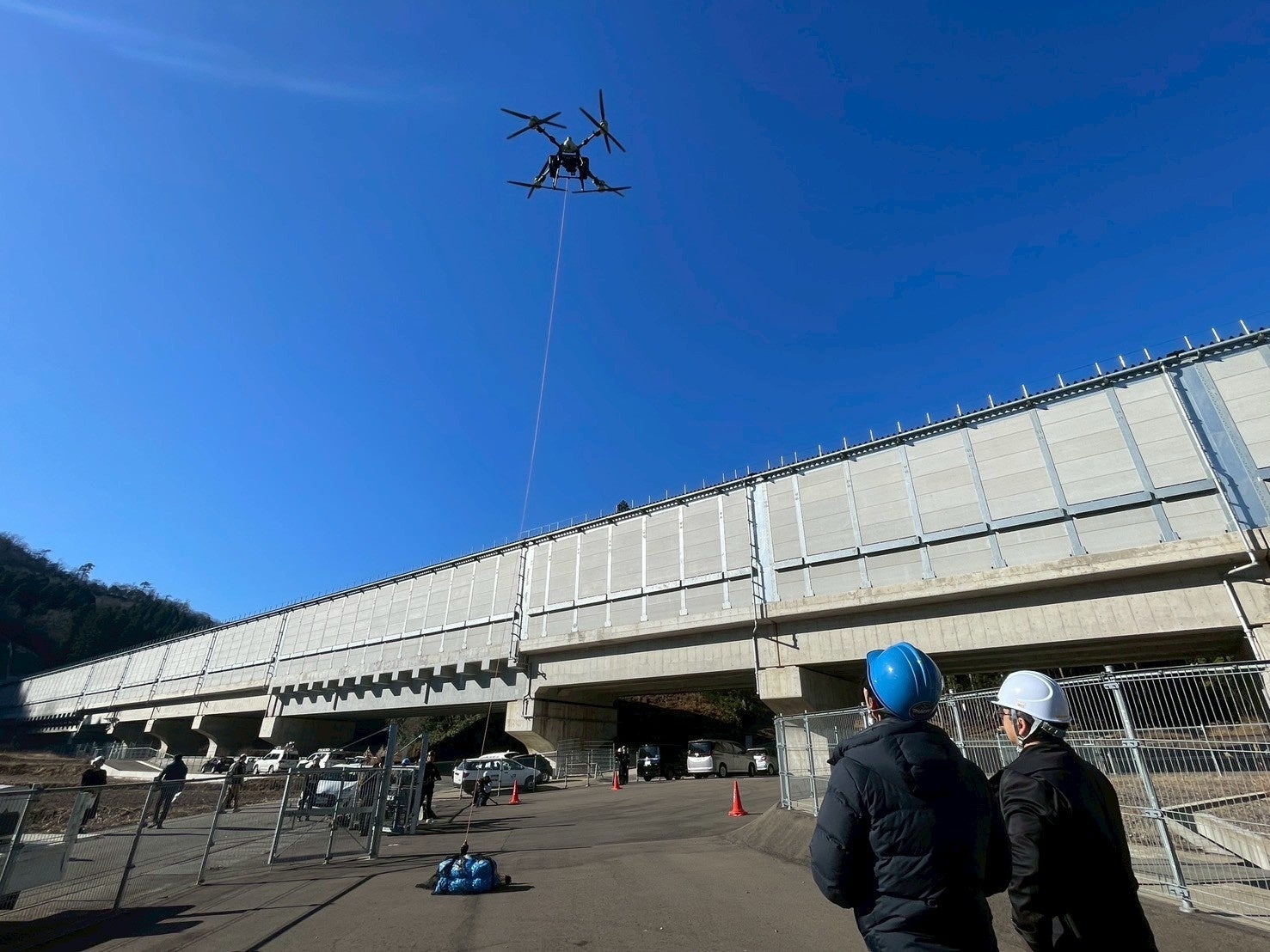 本実証実験を通じて、大型物流ドローンが、豪雪地帯や斜面、トンネル上部など、従来は人による対応に大きな負担がかかっていた環境において、有効な資機材搬送手段となり得ることを確認しました。