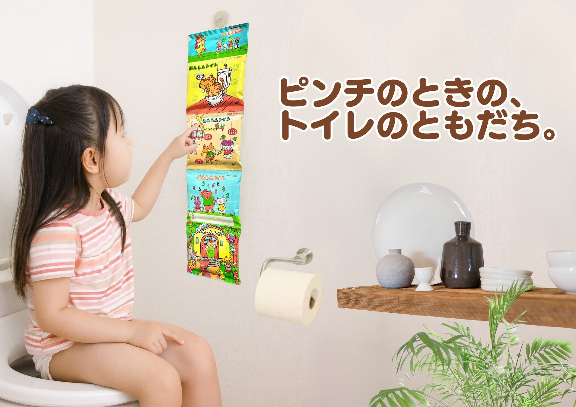 ご家庭での備蓄にはもちろん、保育園や小学校での学びの場でも役立ちます。トイレに吊り下げておくことで、身近に感じながら日常の中で自然に防災意識を育てます。