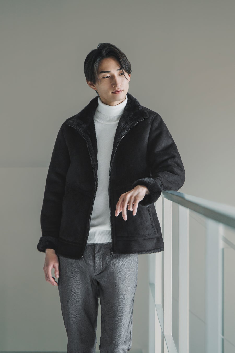 ファーなのにスッキリとした見た目の意外性に、一度着るとヤミツキに。