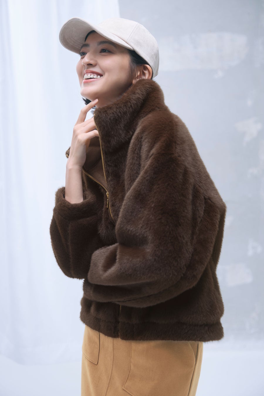 ムートン調のショートブルゾンは、やわらかな素材で最高な着心地。