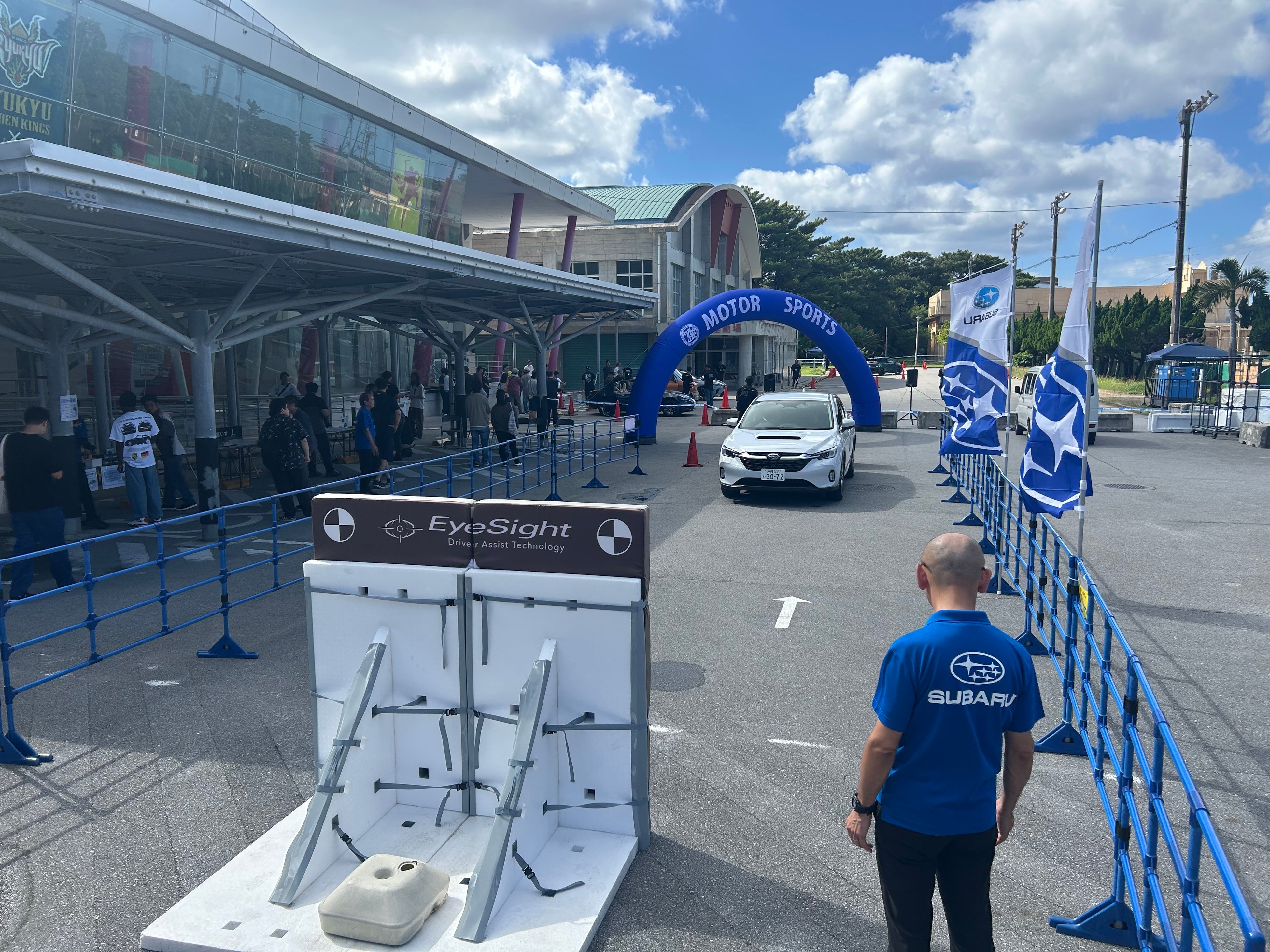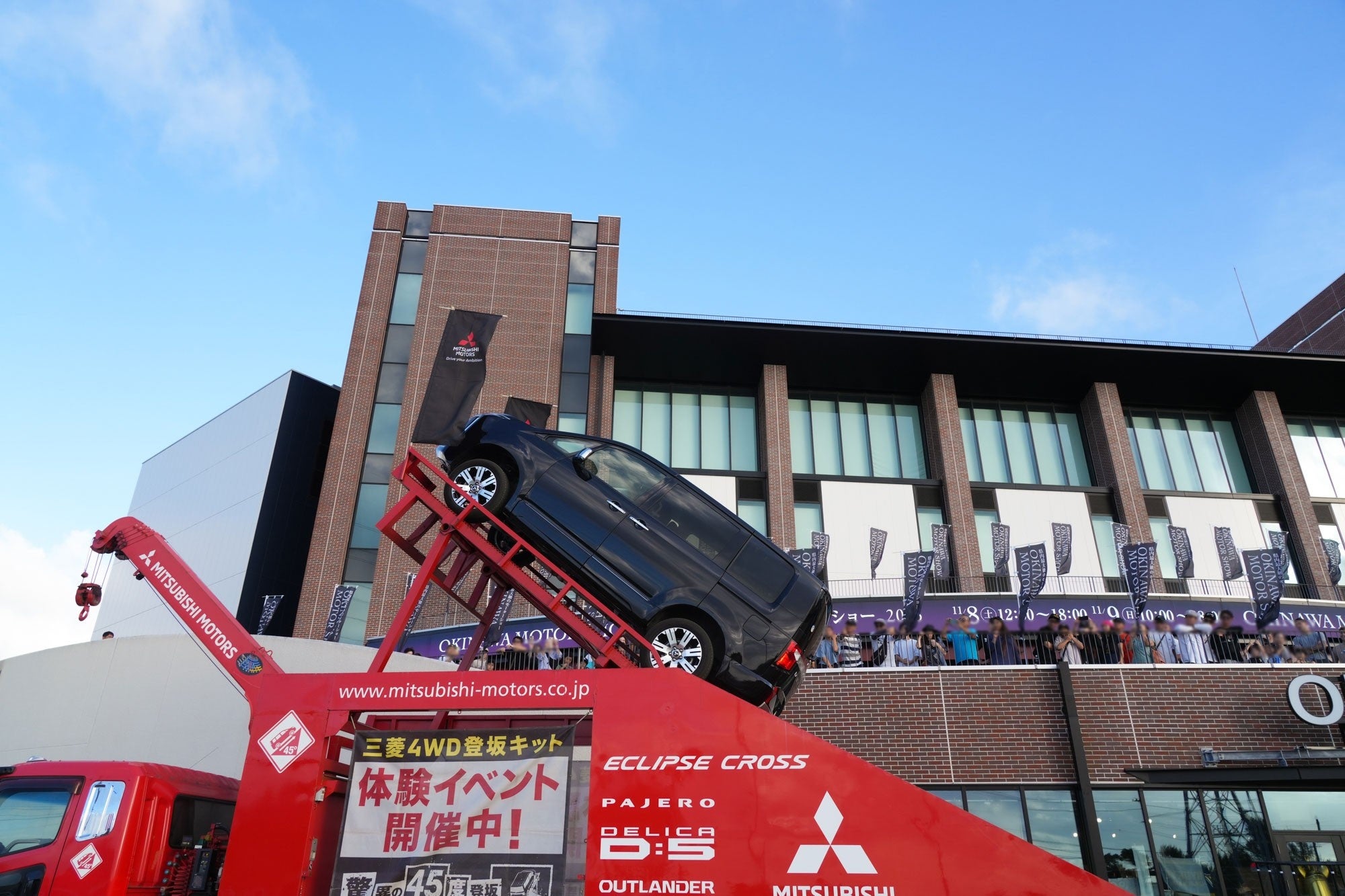 アリーナ正面エリアでは、琉球三菱自動車販売株式会社による45度登坂体験車両が登場し、スリルある実演で迫力のPRを行っていました。
