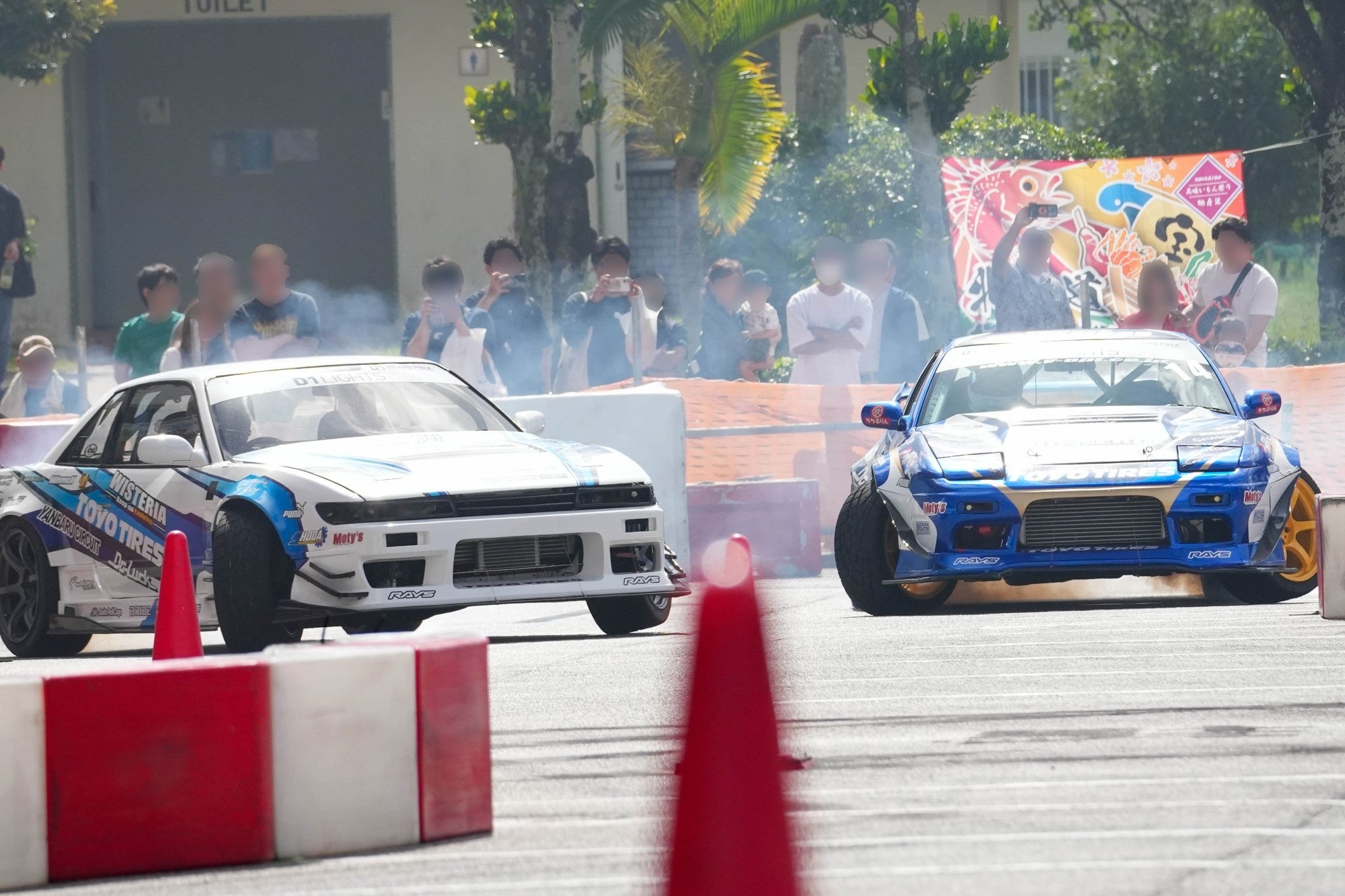 また、Team TOYO TIRES DRIFT 所属のD1グランプリ2025シリーズチャンピオン藤野秀之選手と、沖縄県出身の玉城詩菜選手が特別出演し、息の合った華麗な演舞を見せ会場を沸かせていました。