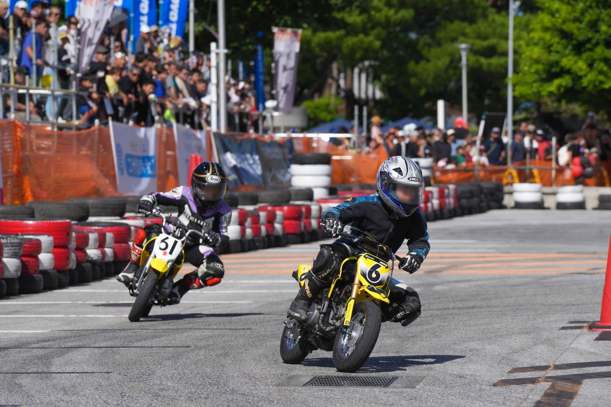 オンロード会場では、ドリフトとミニバイクのデモ走行が行われ、迫力のエンジン音や走行に歓声が上がりました。