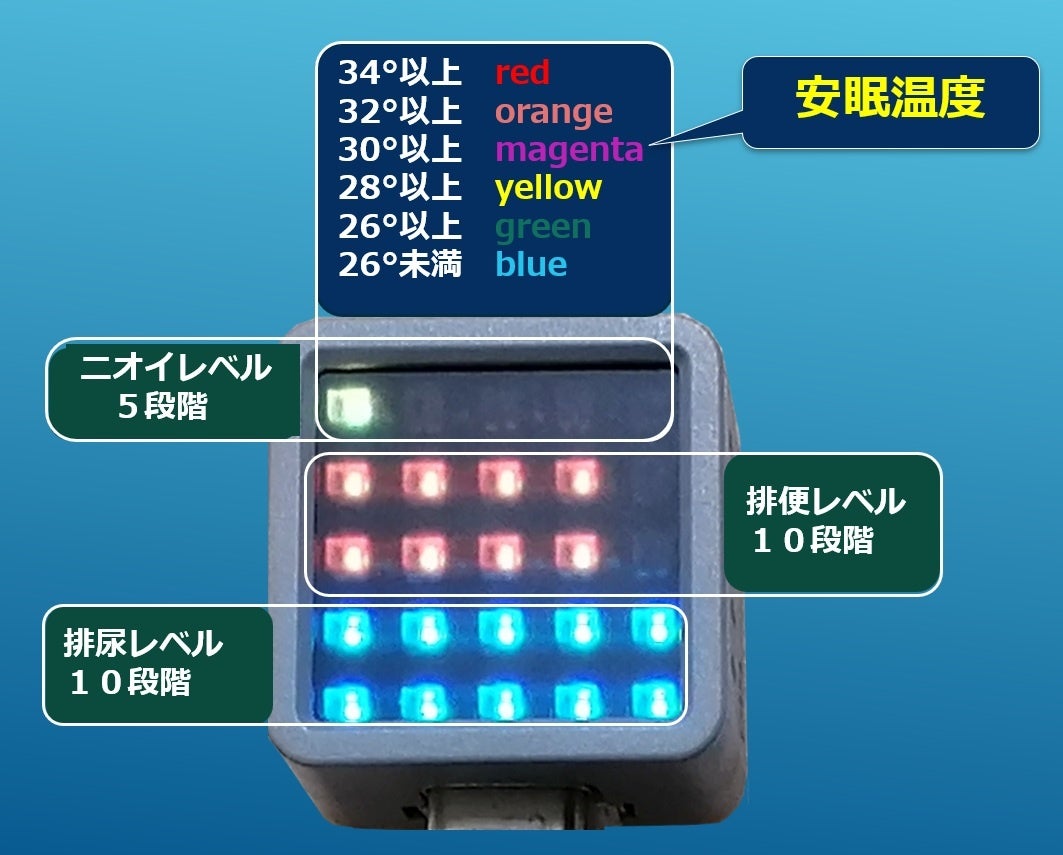 高精度検知:ニオイ・湿度・温度の3種のセンサーで排便と排泄の検知精度を向上