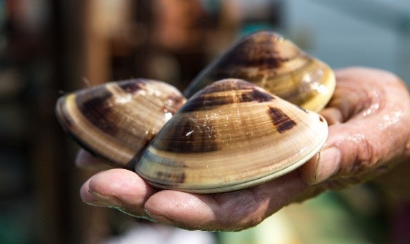 旧東海道桑名に広がる干潟で獲れる、木曽三川の淡水と伊勢湾の海水が混ざり合う栄養豊富な漁場で育ったハマグリ。江戸時代には特産品として歴代の将軍にも献上されるほど、身が大きく濃厚な味わいが特徴です。