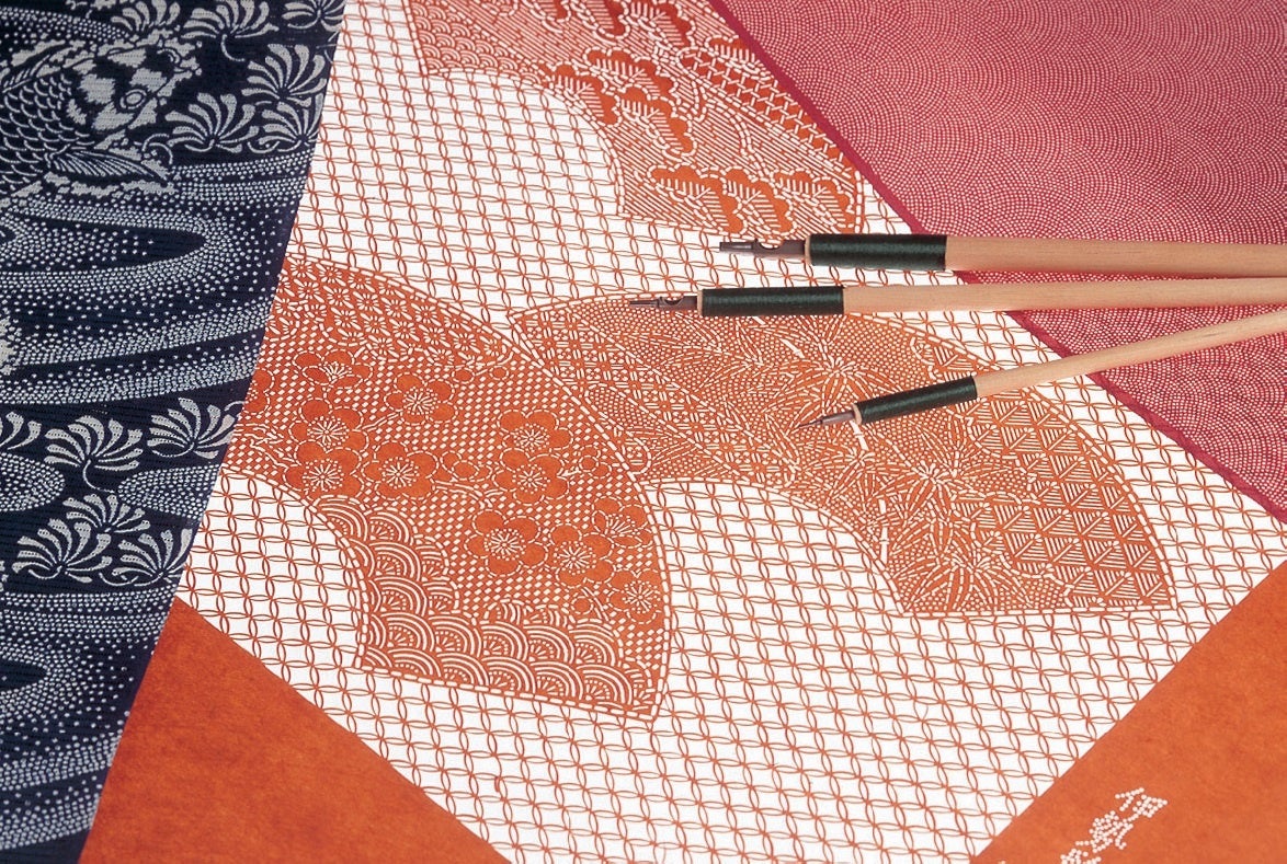 伊勢形紙は、柄や文様を着物の生地に染めるために用いるもので、千年余りの歴史を有します。柿渋を用いて和紙を貼り合わせた紙に、細かい刃先の彫刻刀で着物の文様等を丹念に彫り抜いたものです。1983年(昭和58年)4月27日から経済産業大臣指定の伝統的工芸品に指定されています。