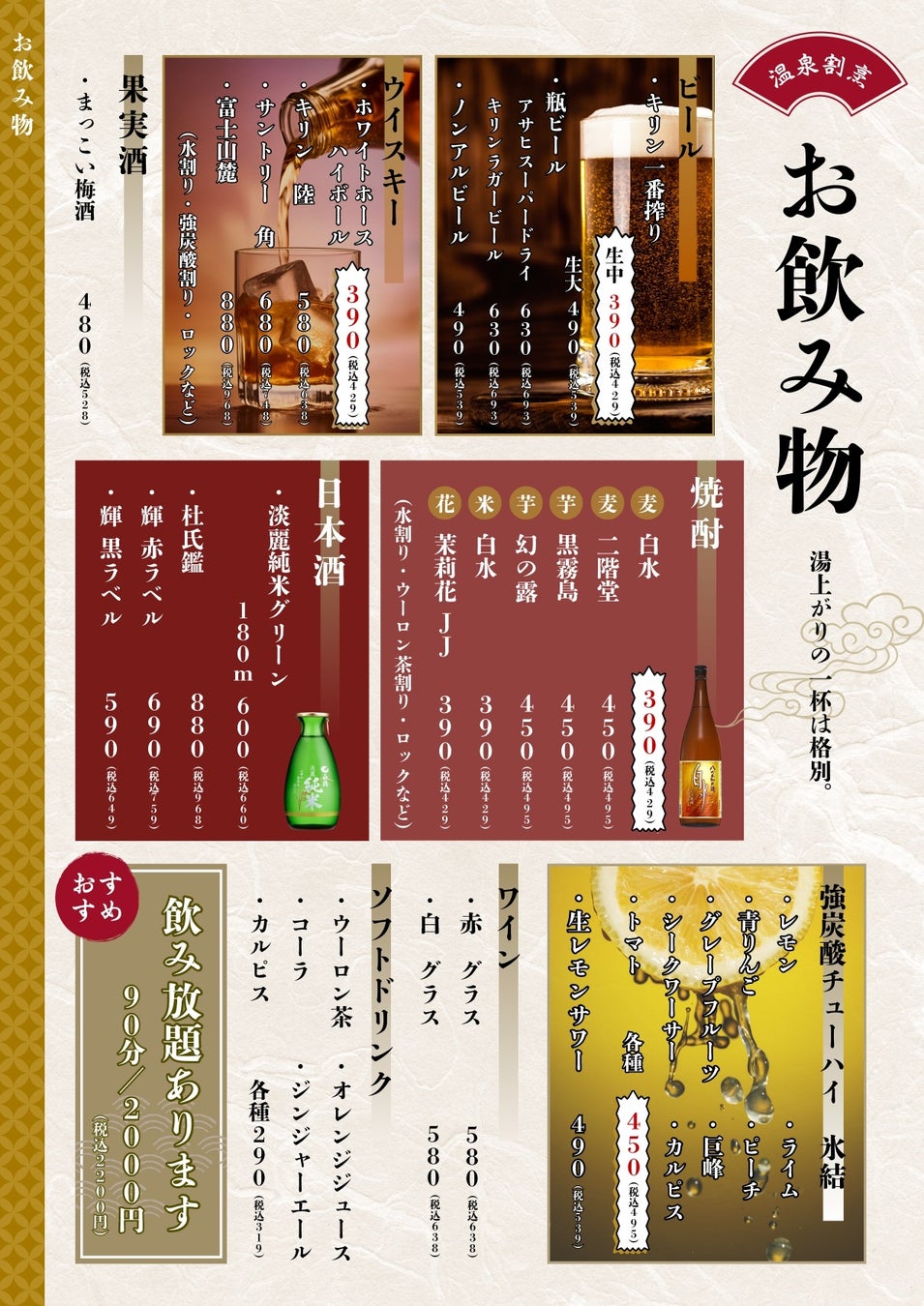 と、風呂上がりに気軽に立ち寄れる価格帯を実現。