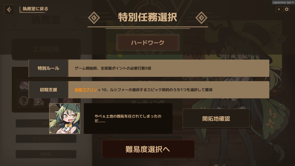 「執務室」→「工場開発」よりプレイできます。