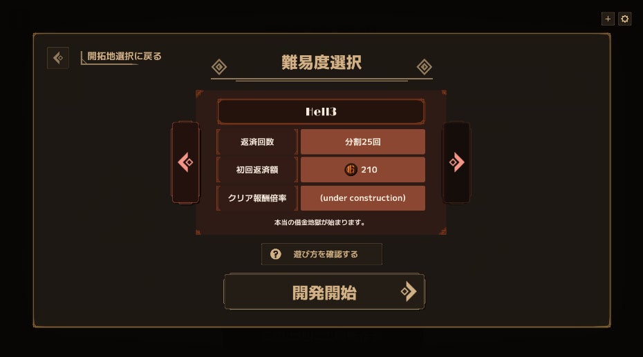 アンロック要素(未実装)での強化を前提にした難易度のため、通常ゲームに慣れてきた後の挑戦をオススメします。