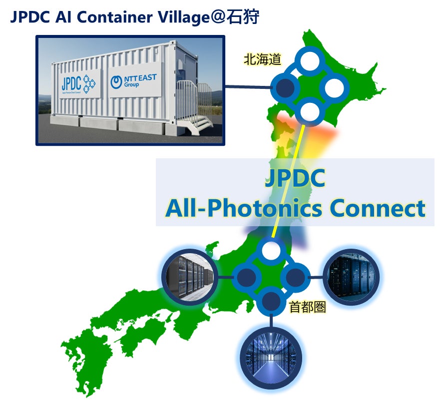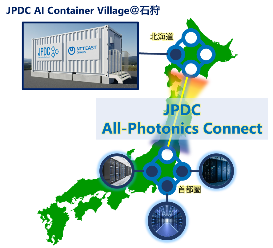 また、他社設備によるサービスのラインナップによる展開により、北海道石狩に構築を進める「JPDC AI Container」と首都圏等の主要データセンター群をJPDC All-Phonics Connectで直結する構想等の実現をめざします。