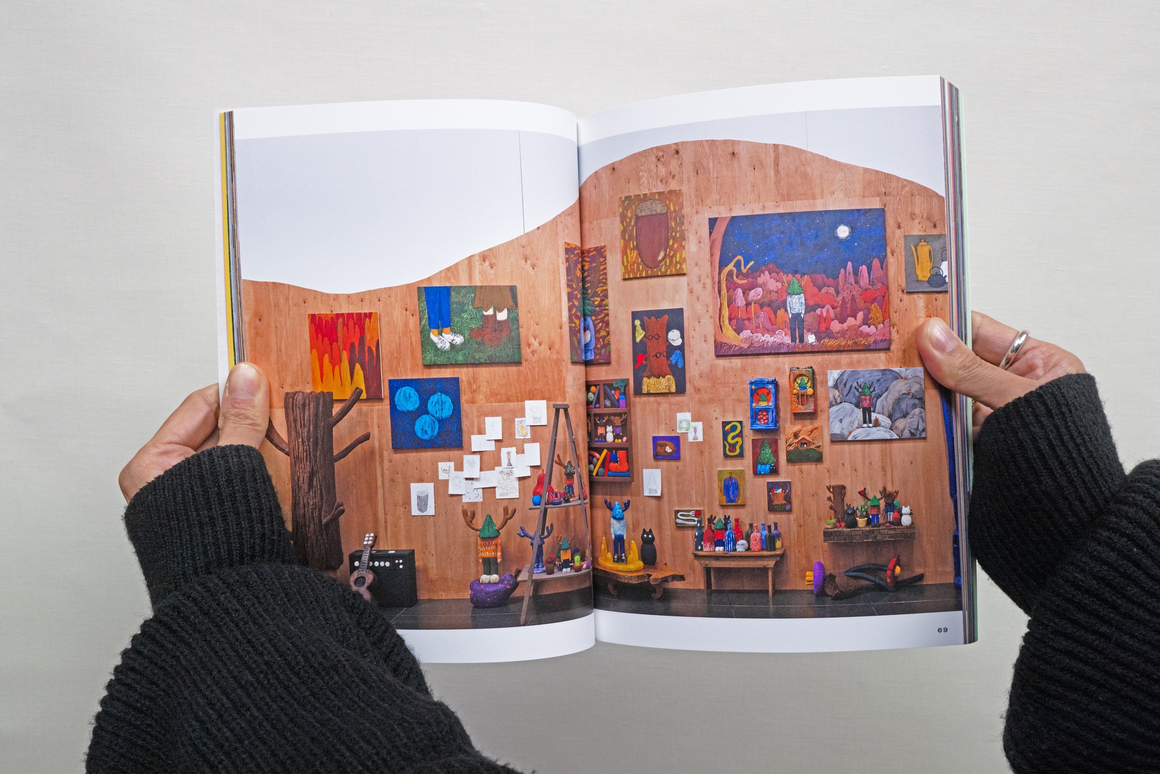 “あそびのデザイン”をテーマに活動するデザインユニット「COCHAE」の軸原ヨウスケ氏がデザインを担当。展覧会風景のみならず、作品の細部を捉えたディティール写真や、貴重なスタジオでの制作風景も豊富に掲載しています。