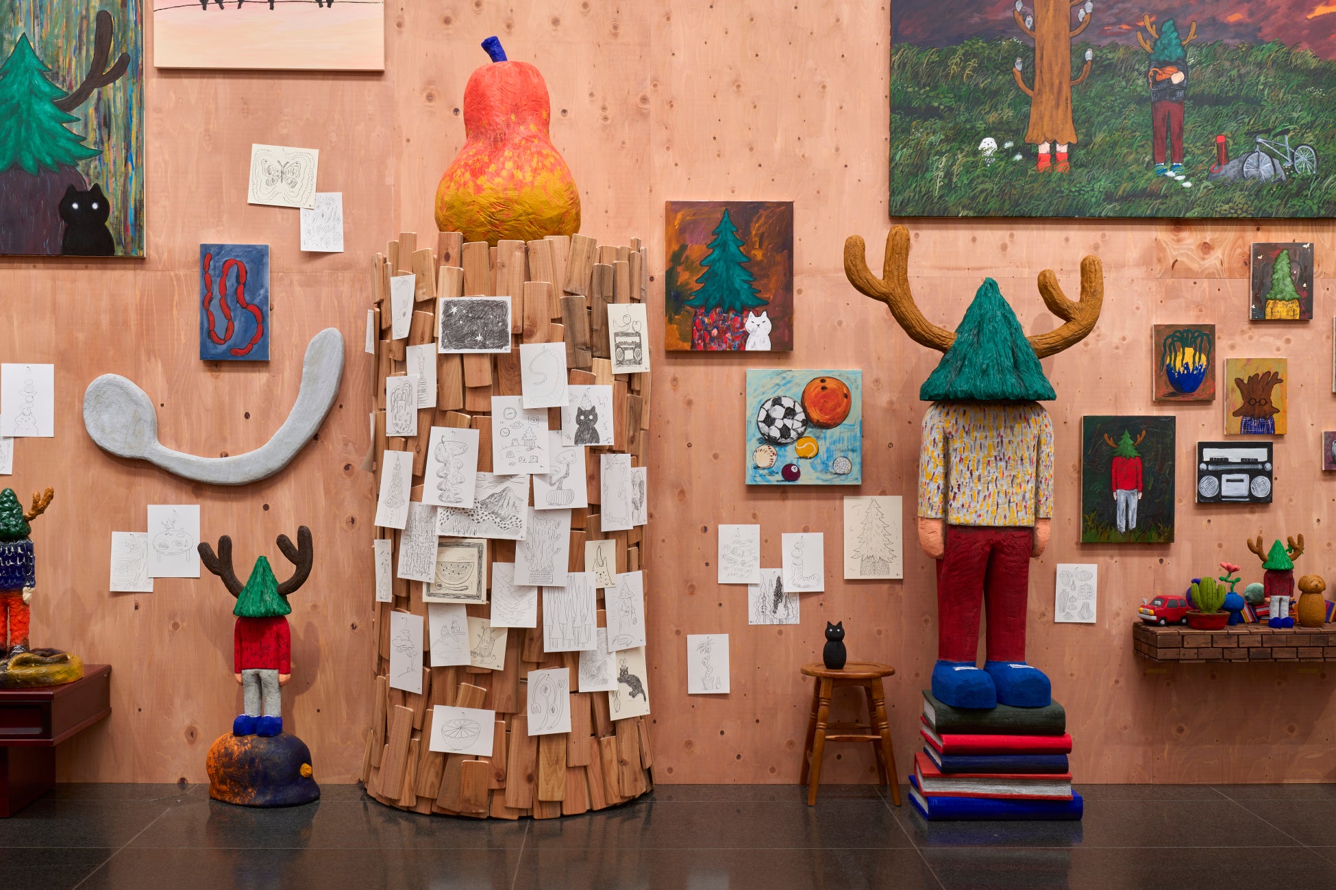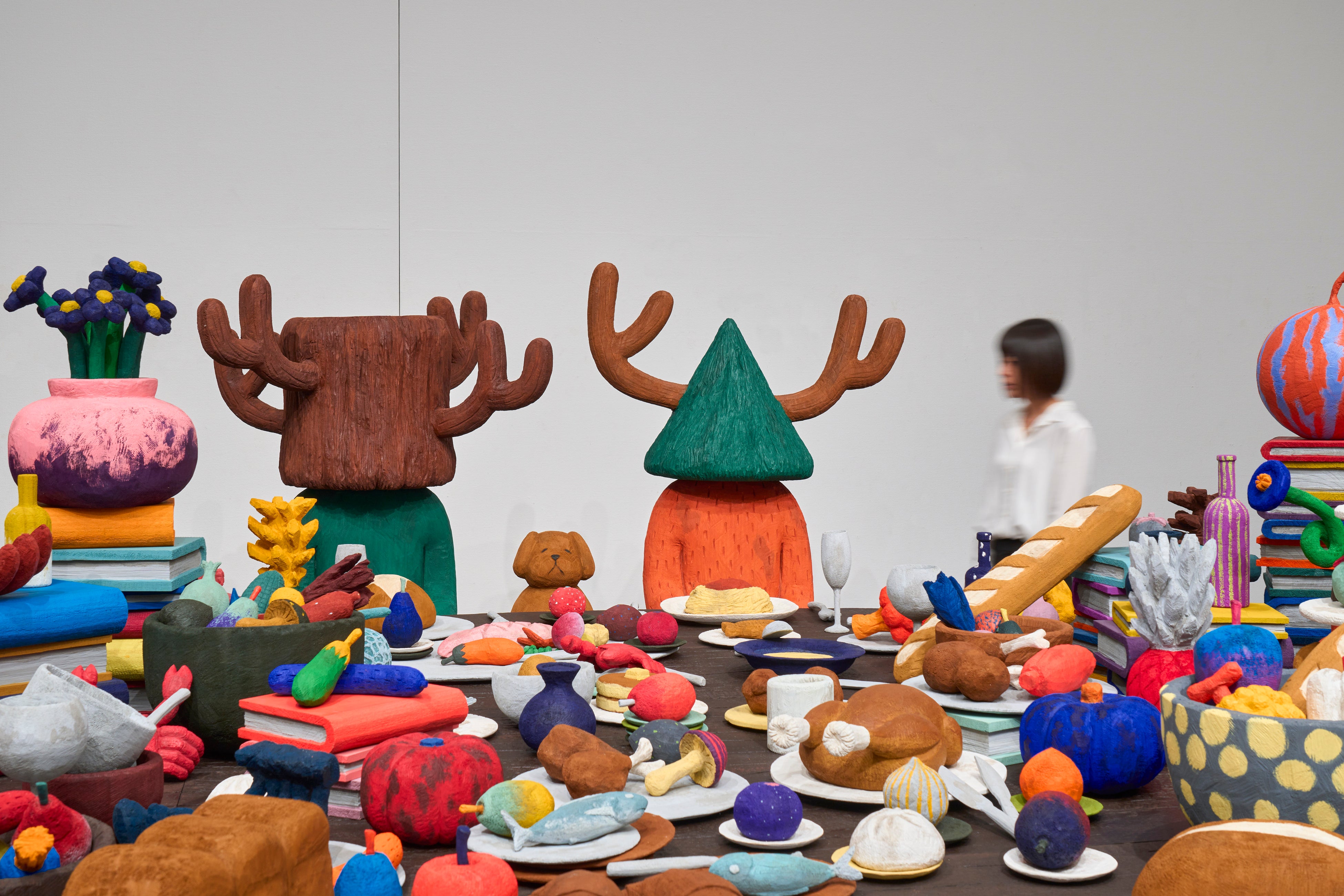 展示室のみならず、屋内広場や中庭なども使用し、同館の建築を活かした展示空間に、絵画や立体作品、インスタレーションなど多様な表現方法で作り上げた、本展初公開の新作を中心にかつてないスケールで展開しています。