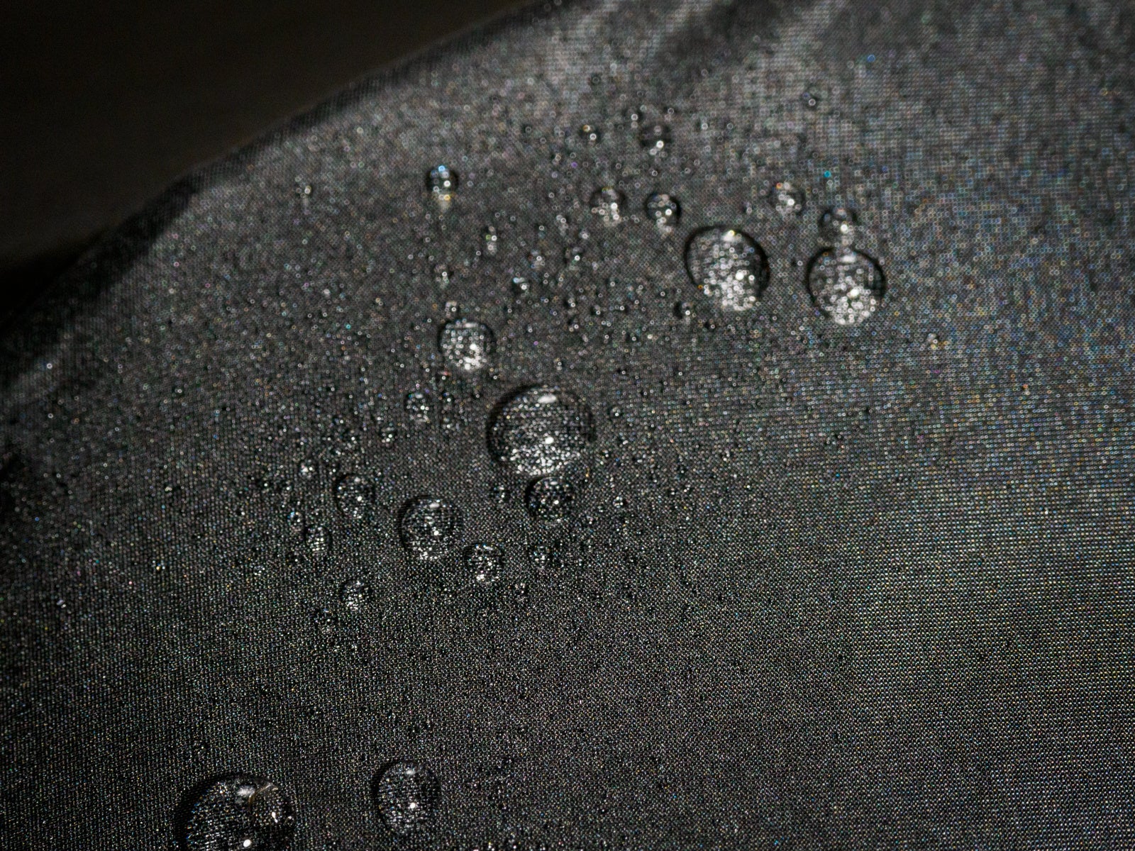 たたむ時に生地に残った水滴で手が濡れてしまうストレスを解消するため、耐久撥水性能を強化した「パワフルドライ®」コーティングを採用しました。強力な撥水効果により、水滴がスルッと落ち、傘をたたむ際に手が濡れにくいのが特徴です。