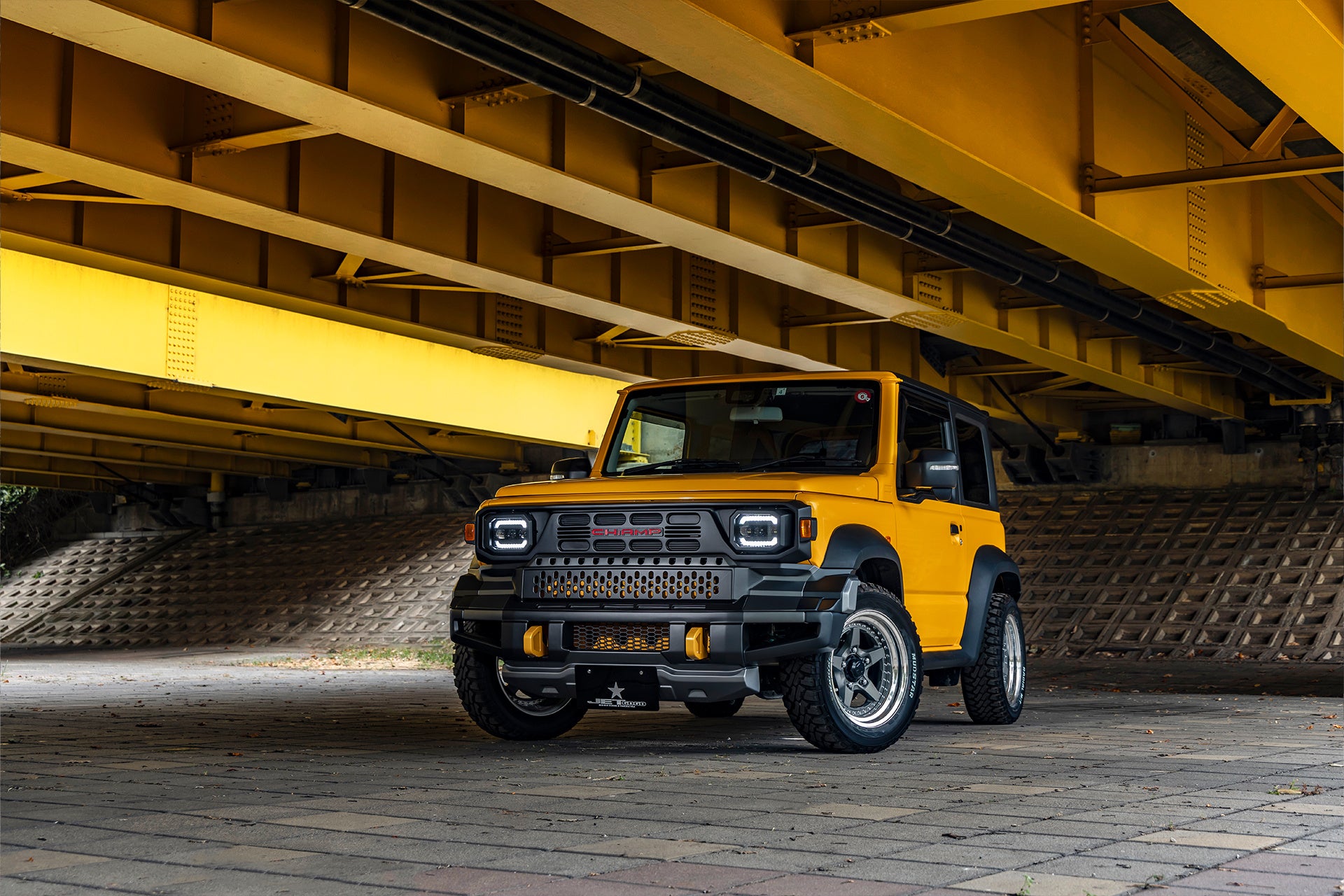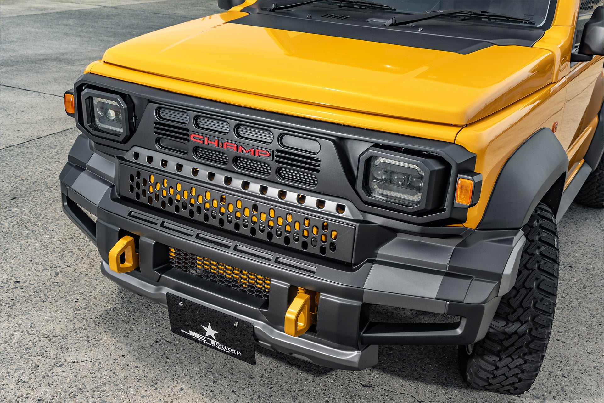 株式会社ガレージイル(本社:大阪府羽曳野市)は、カスタムカーのワンオフ製作やペイントも手掛けるパーツメーカー兼ビルダー。スズキ ジムニー系では、アメリカのレトロSUVの雰囲気を再現したフェイスキット『BRON55(ブロンゴーゴー』が大ヒットを記録しました。その第2弾として2025年10月31日よりリリースされる『CH:AMP』(ジムニーシエラ/ノマド専用)は、タイで人気のピックアップトラックがモチーフ。フロントグリル・フロントバンパー・ヘッドライトなどが一体となった構成で、違和感なく車両本体のデザインに溶け込みます。すでに車をお持ちの方から、新車・中古車の購入を検討中の方まで、あらゆるニーズのご相談に対応致します。