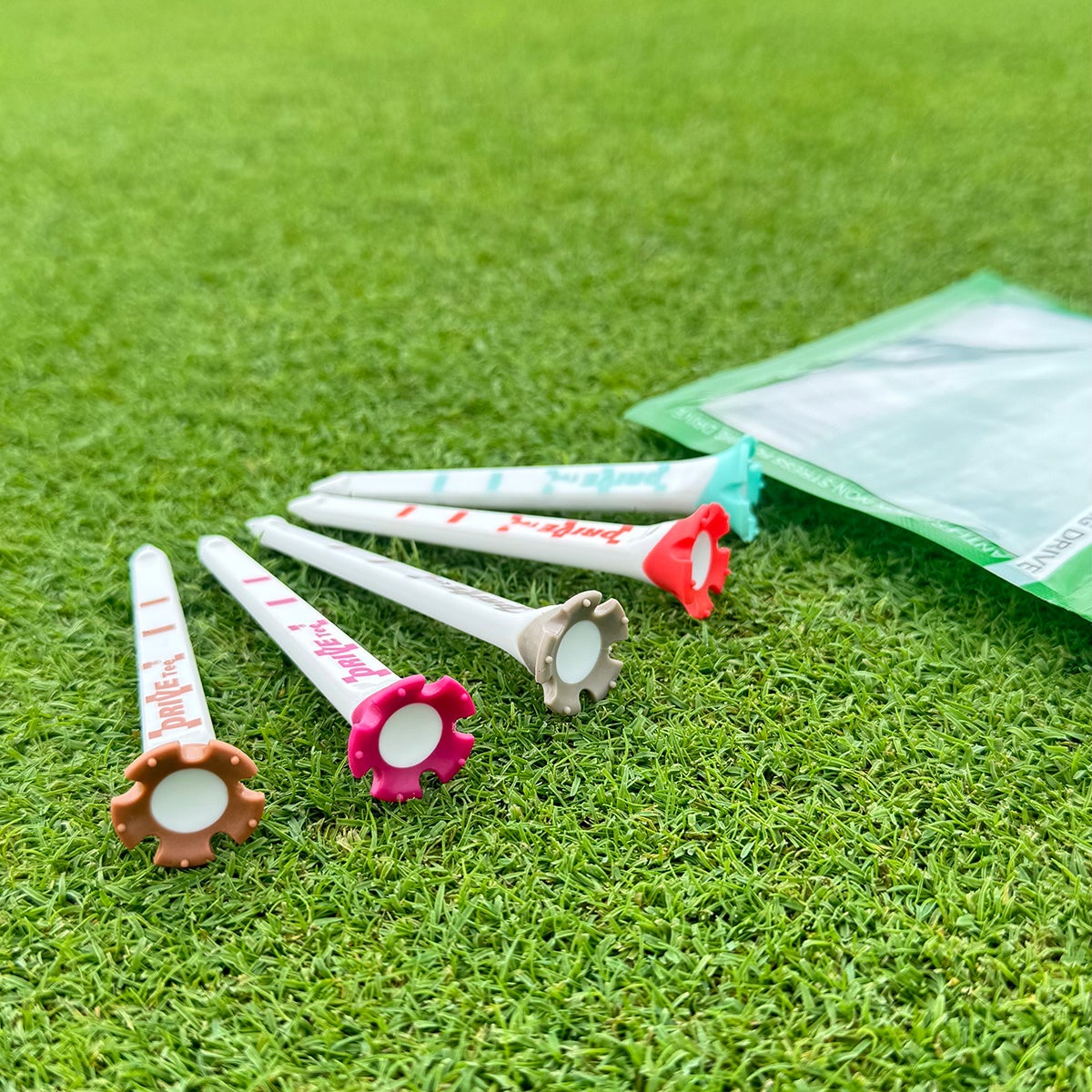 芝に刺すとお花のような可愛らしさも人気の秘訣。髪に挿しても可愛く映えます。カラフルで見つけやすくなくならないのでSDGsにも貢献しています。丈夫な素材でボールマークも直せる優れものでポケットの中もシンプルに。見た目だけでない機能性や壊れづらさも男性のプレーヤーにとっても使いやすいと好評です。
