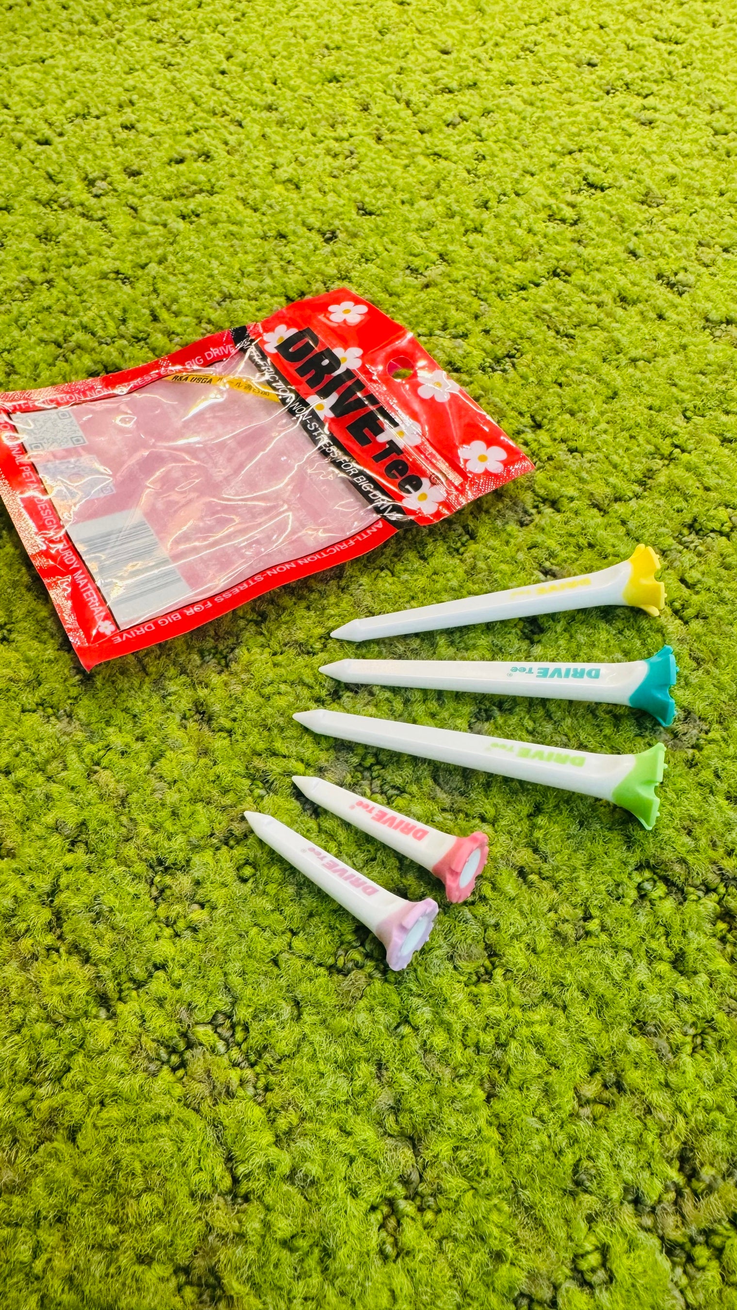 発売開始時からSNSを中心に話題沸騰中のDRIVE TEE(R)。日本のゴルフシーンをよりよくするために生まれた日本生まれのゴルフティーです。様々なゴルファーからのフィードバックをすぐに商品に生かし反映し常にゴルファーが求める距離、方向性、安定性、デザイン性、全てをより良く様々な視点からゴルフファンが増えたらとの思いで作られた花びら型ゴルフティーです。ご使用いただくと、その良さが実感いただけます。