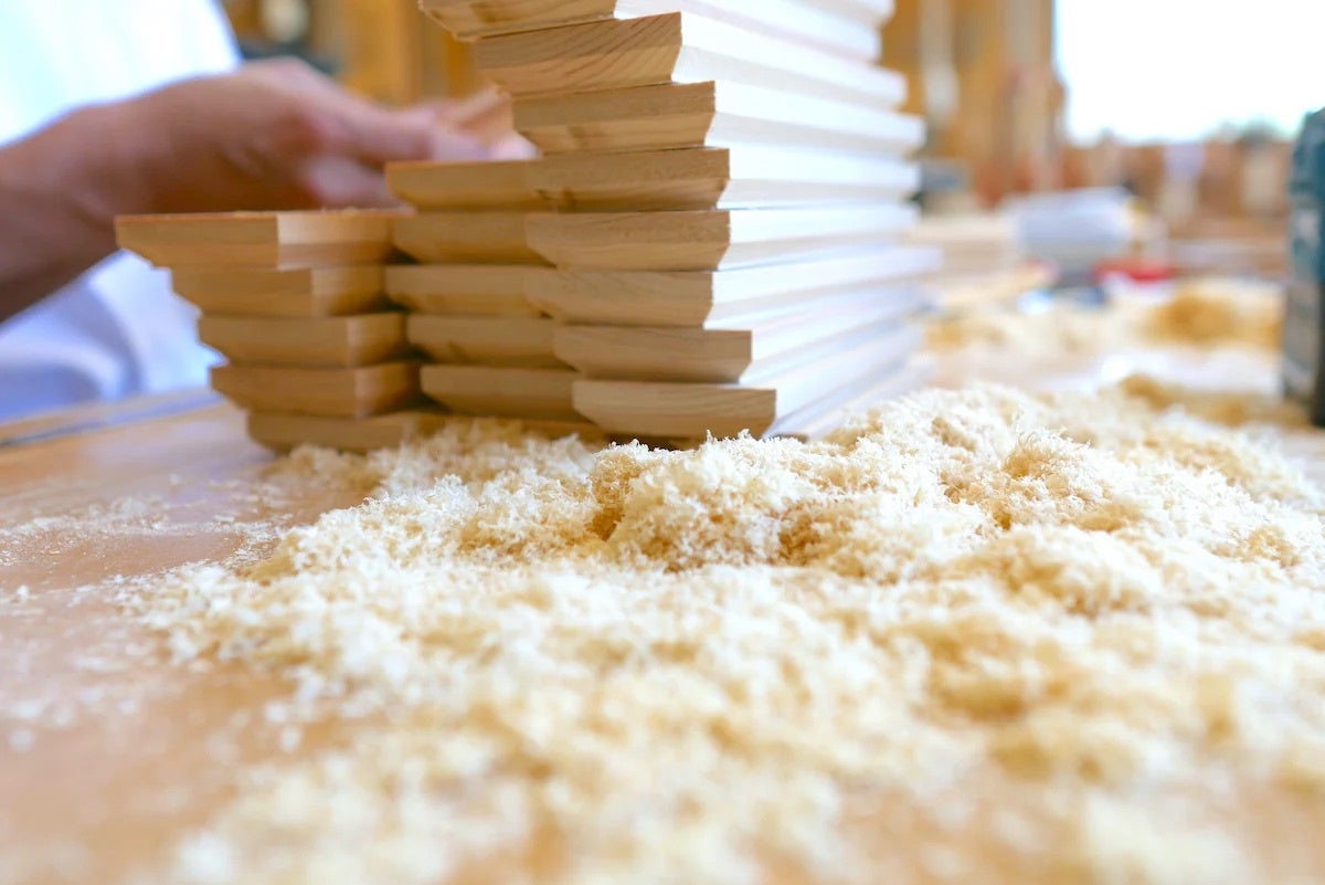 国産木曽ヒノキと神具で用いられる真鍮を使用し、熟練の職人が国内で手作業で仕上げています。軽量で壁面への負荷も低く、毎年繰り返しご利用いただけます。