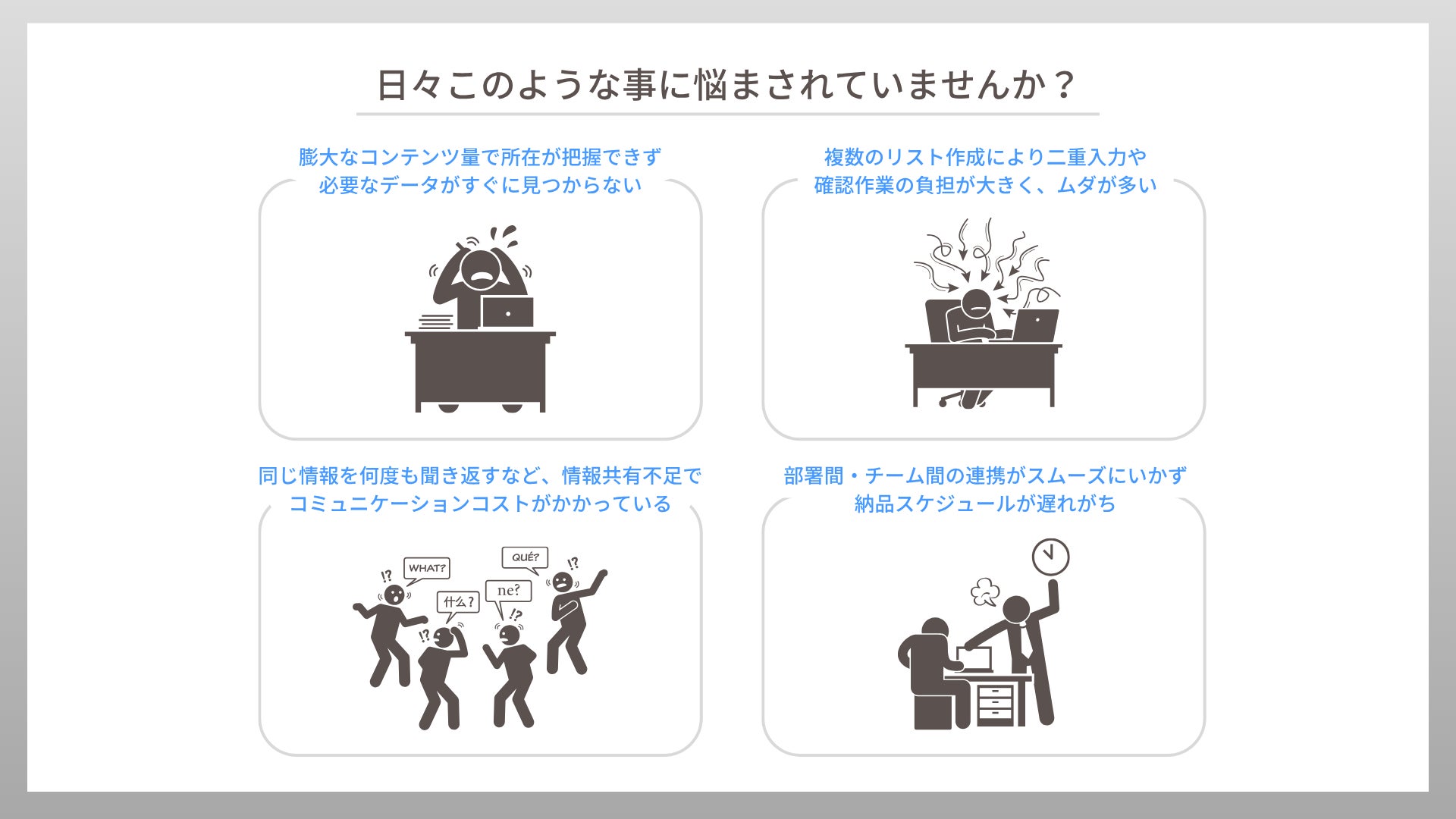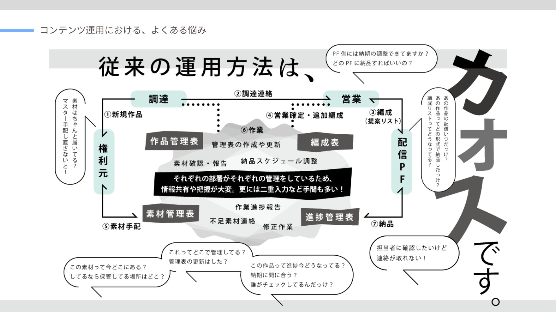 近年、企業のマーケティング活動において動画の活用は不可欠となりました。しかしその裏側で、多くの企業が爆発的に増え続けるコンテンツファイルの管理に悲鳴を上げています。私たち自身、年間6万ファイル以上の動画運用を行う中で、属人化したExcel管理によるファイルの迷子や確認作業の増大、ヒューマンエラーの頻発といった課題に直面していました。この非効率な状況は、制作サイクルの遅延や機会損失に直結する深刻な問題です。