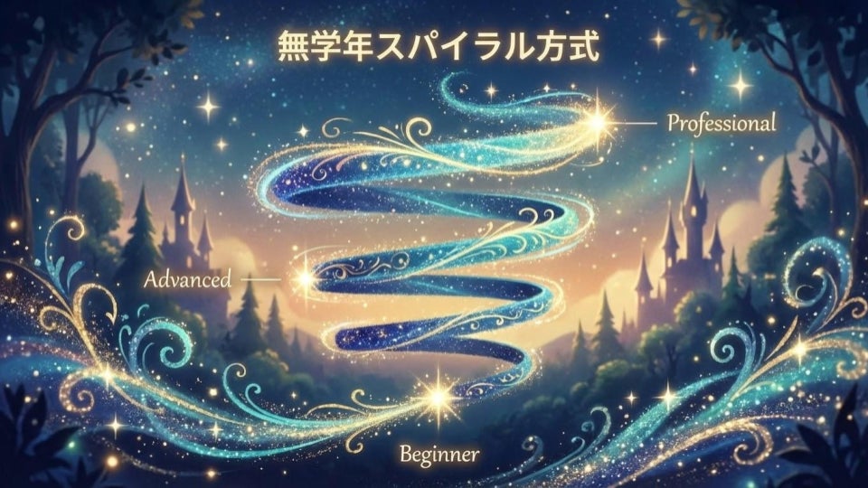 「中1だからここまで」という制限は、才能への冒涜です。THE ONEに学年は存在しません。 「無学年スパイラル成長方式」を採用し、初心者からプロフェッショナルまで、個々の習熟度に合わせて役割を更新し同じテーマを螺旋(スパイラル)状に深めていきます。中学生が大学生レベルのAI論文を書くことも、日常的に起こりうる環境です。