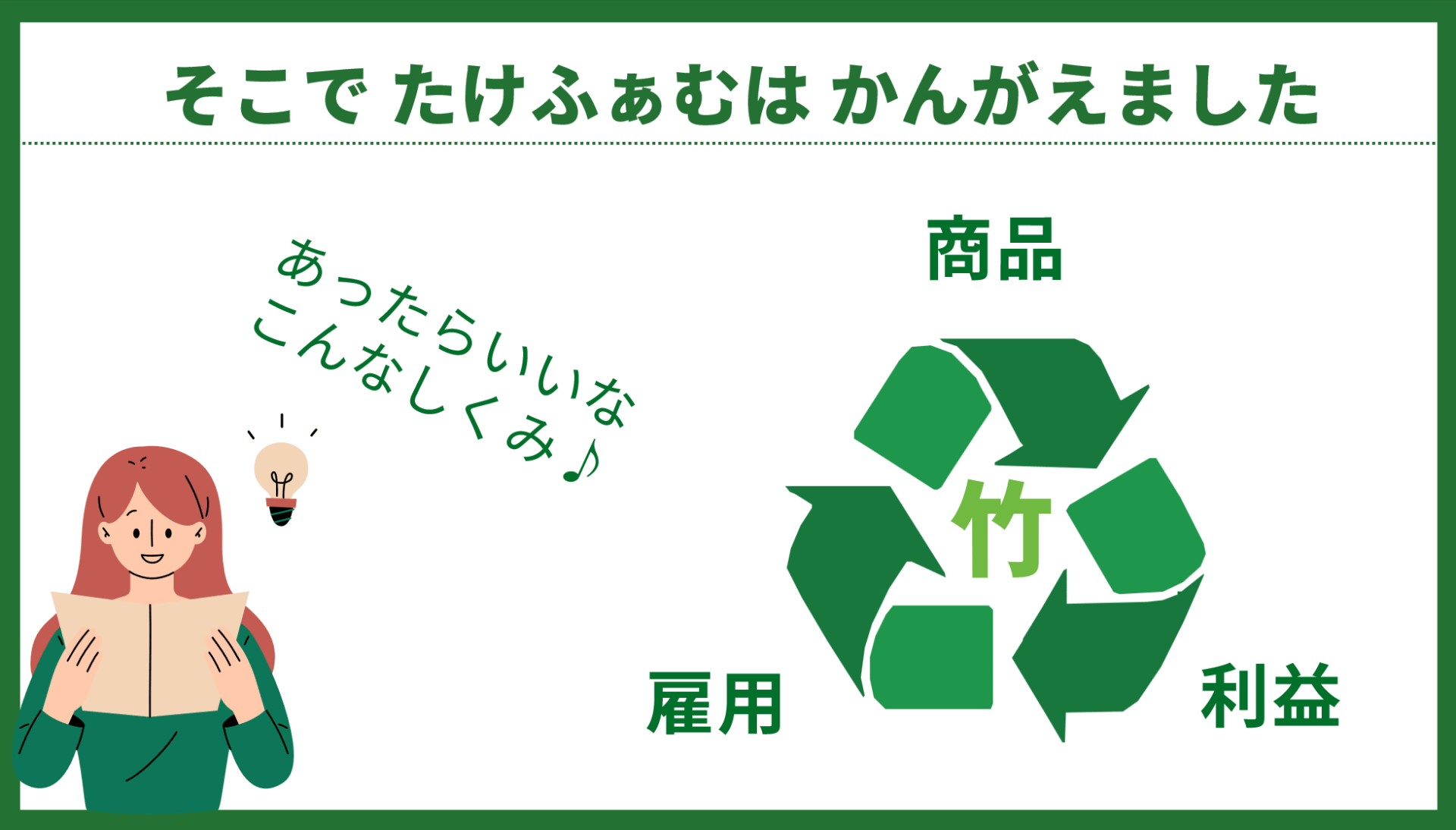 たけふぁむが目指す「竹害」を「竹財」に変える事業は、単なるビジネスに留まりません。
