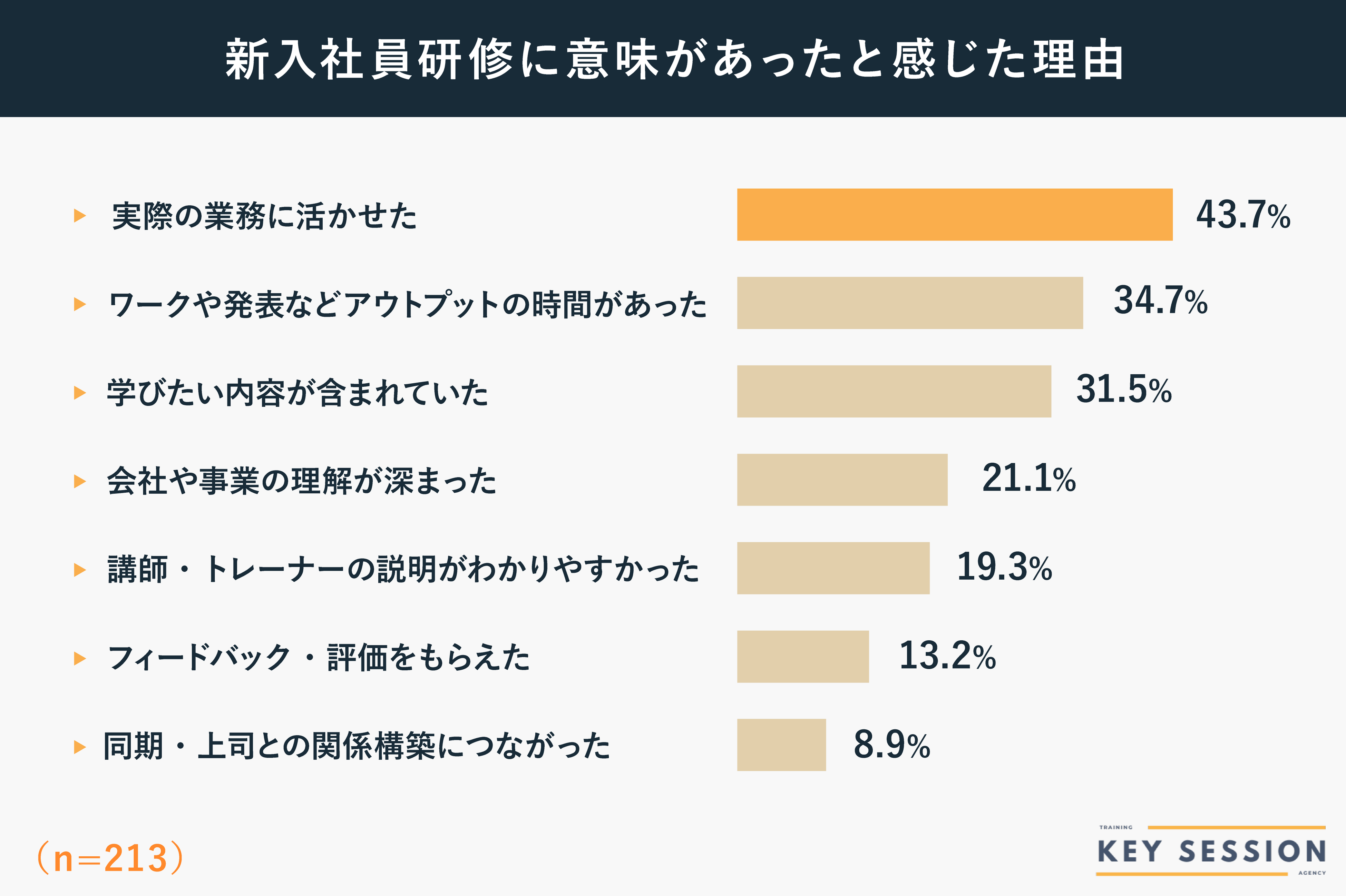 「非常に意味があった」「まあまあ意味があった」と回答した人に理由を尋ねたところ、「実際の業務に活かせた」が最多の43.7%となりました。