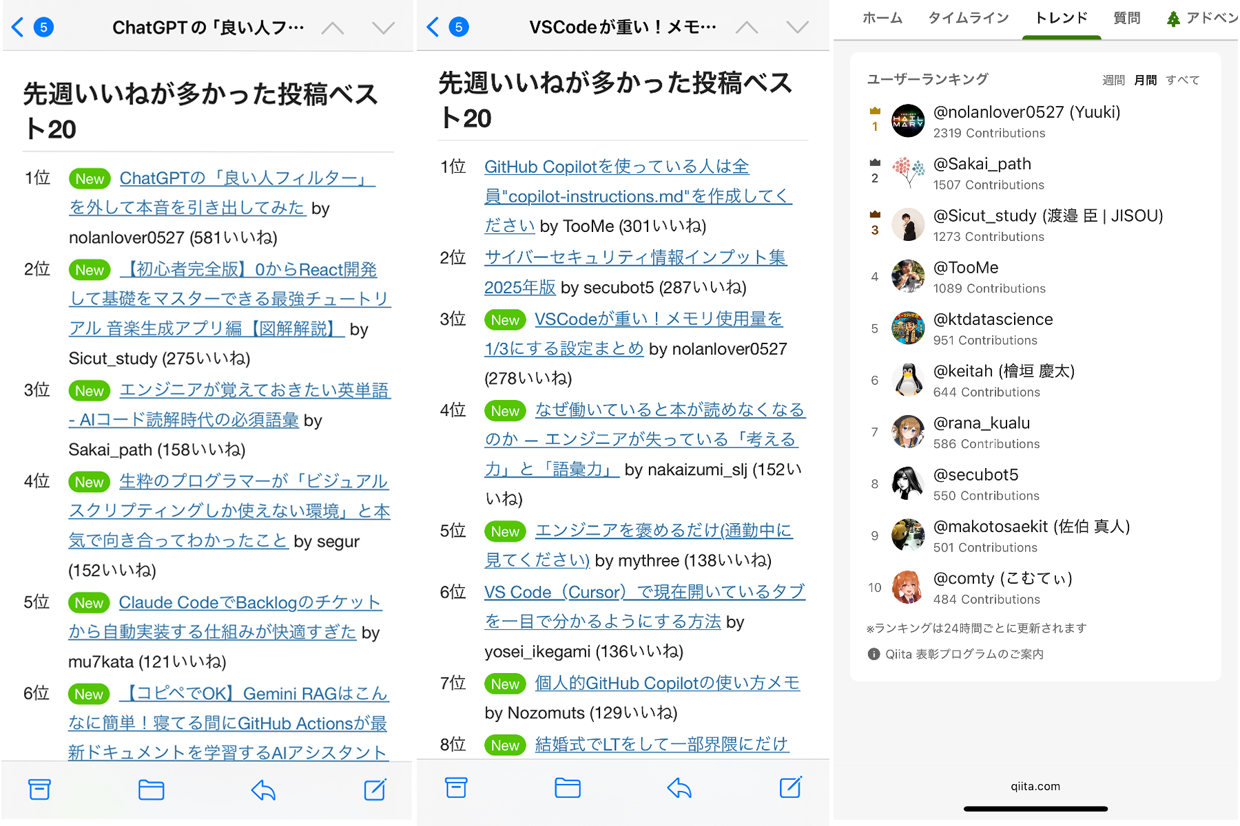 今回の850いいね超えの記事が特に大きな反響を得ていますが、当社では技術知見の発信を継続的に行っており、100いいねを超える人気記事も複数公開しています。