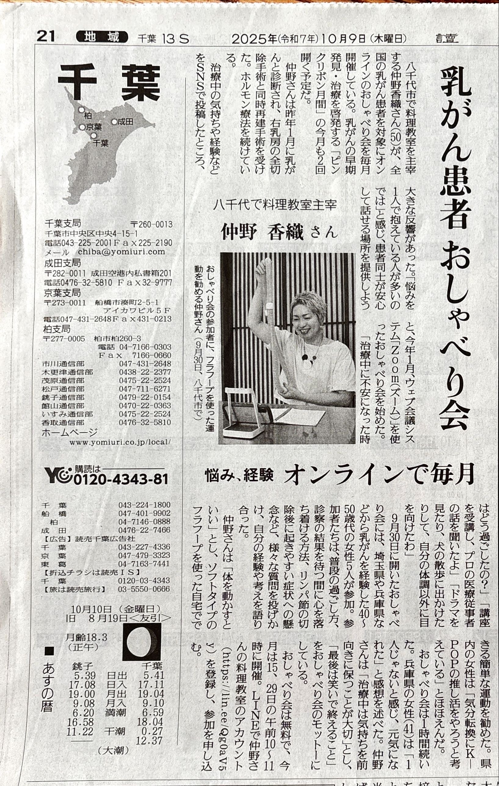 千葉県の乳がん経験者の料理家(仲野香織)が主宰。「乳がんになる前よりも、今の自分が好き」を叶える 温かなコミュニティ誕生!自宅から、世界中の乳がん経験者とつながれるコミュニティ。