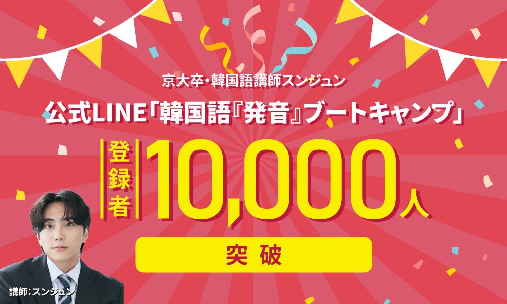株式会社アクセントエース(東京都中央区)は、公式LINEアカウント「スンジュンの韓国語『発音』ブートキャンプ」の登録者数が1万人を突破したことをお知らせします。