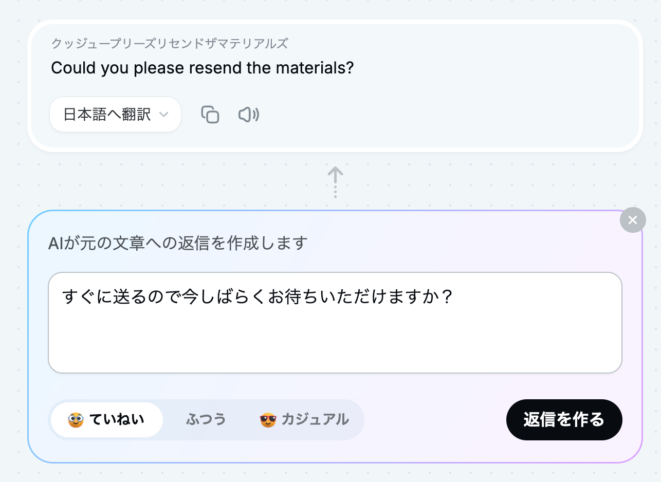 海外クライアントへのメールに最適なトーンの返信を自動下書き