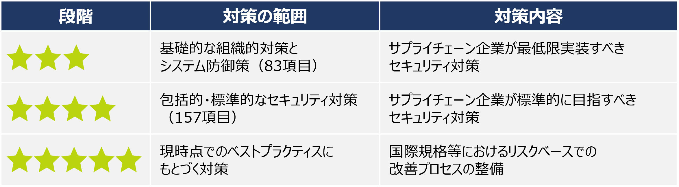 この制度は、サプライチェーンを構成する企業の IT基盤におけるセキュリティ対策を可視化し、共通基準に基づいて適切な対策を促すことを目的としています。発注企業は契約時に受注企業へ必要な対策段階を提示し、実施状況を確認することが想定されています。