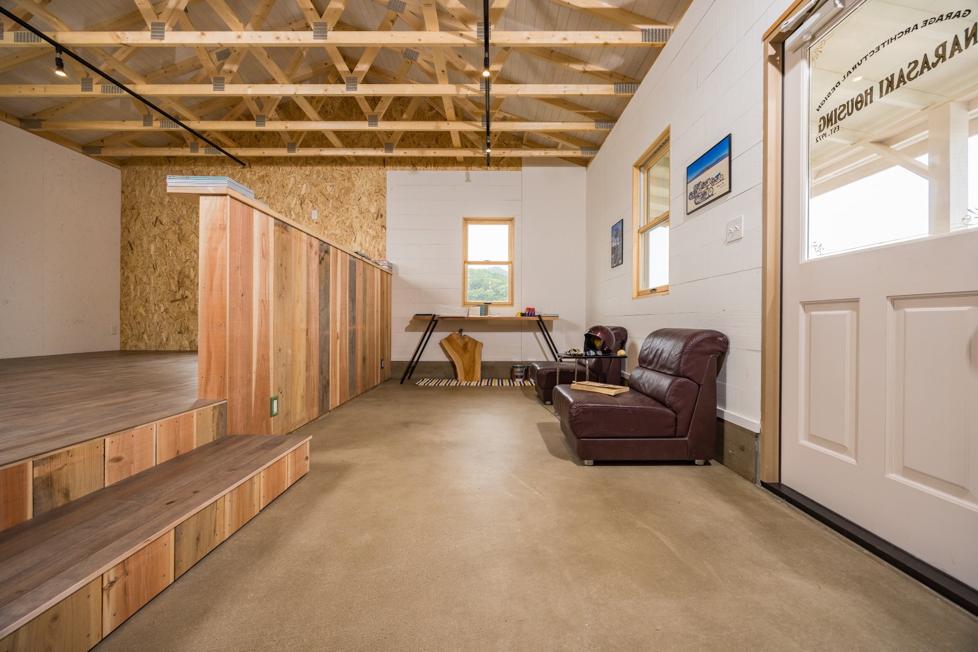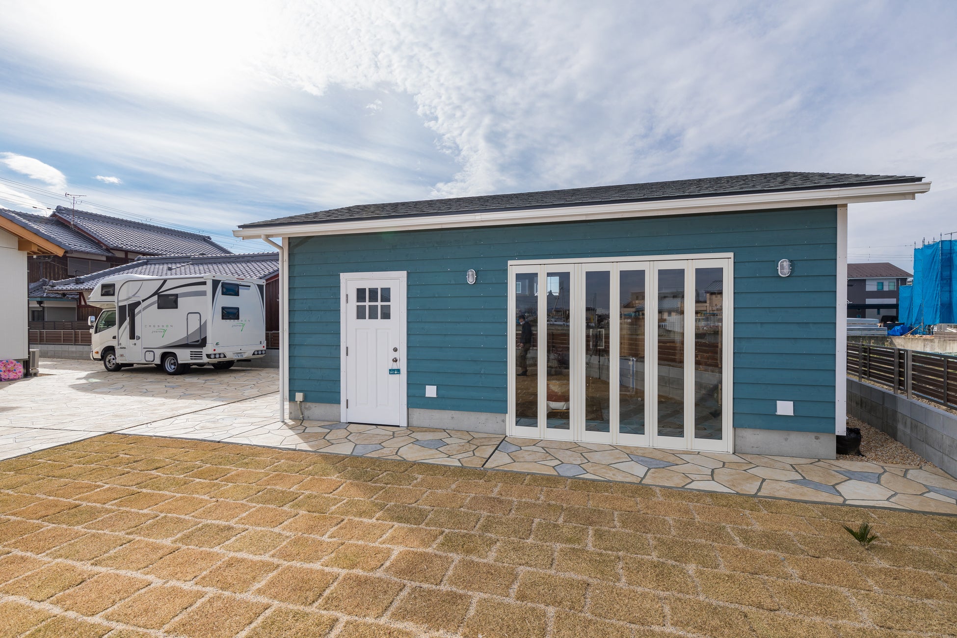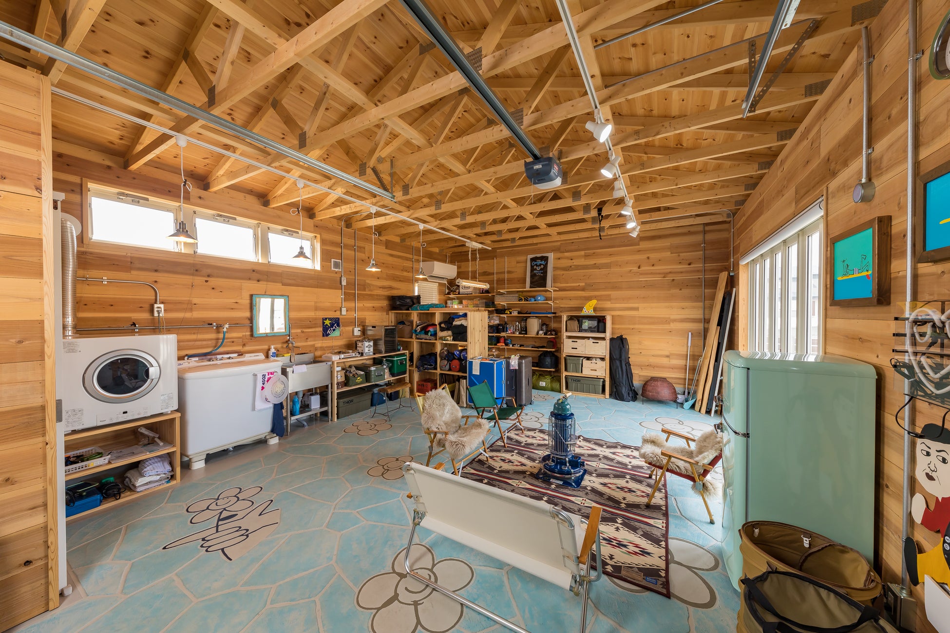 弊社のガレージは木造枠組み壁工法(以下2×4工法)を採用しており、内部の柱がなく大空間が取れる構造となっております。耐震性にも優れ、また木造であることで鉄骨では難しい後々のDIYも容易にでき、自分だけのオリジナルな内装を仕上げることもできます。用途はさまざまで、愛車を守るガレージ、キャンプギアや釣り道具など趣味の収集、保管部屋やおしゃれな店舗にもお使いいただけます。実際にガレージの展示場では大きさや質感、内装やオーバースライダードアの動きなど体感できます。