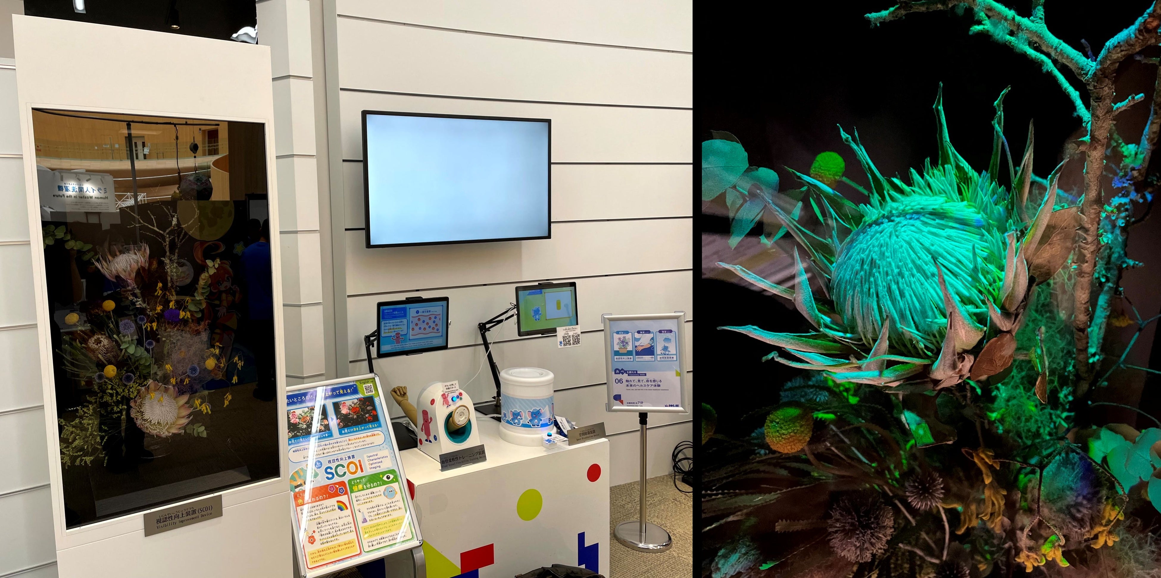 大阪・関西万博でのSCOI展示では、いけばな草月流の作品を用い、光の分光構成の違いによって作品の見え方が変化する様子を紹介しました。