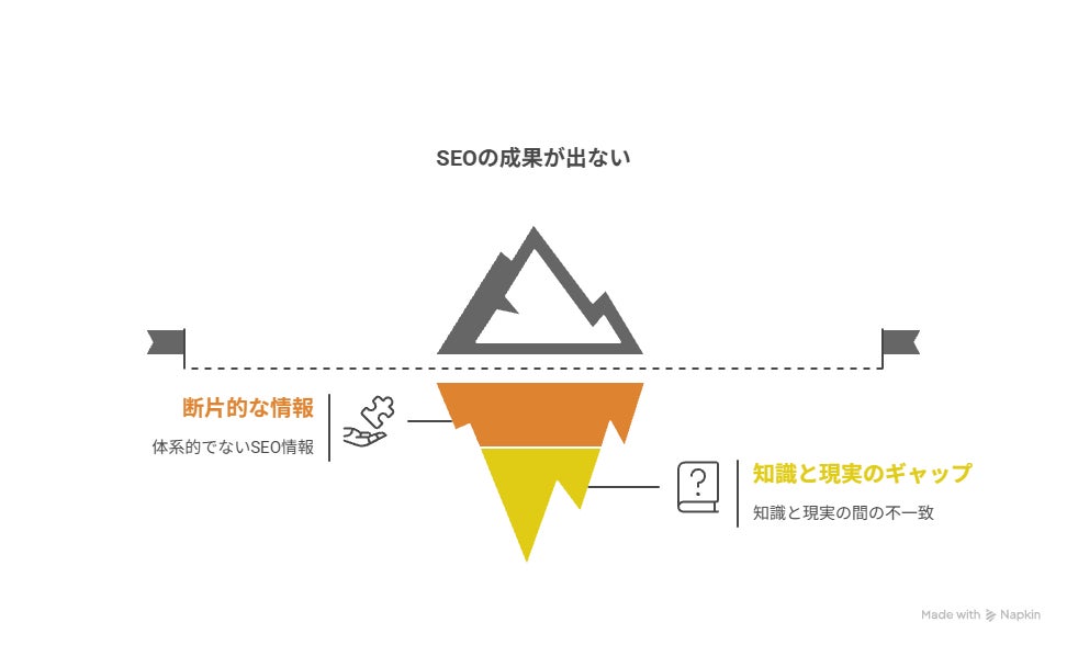 インターネット上には無数のSEO情報がありますが、その大半は断片的で、体系的ではありません。そのため、知識と現実のギャップが生まれ、努力しても成果に結びつかないのです。