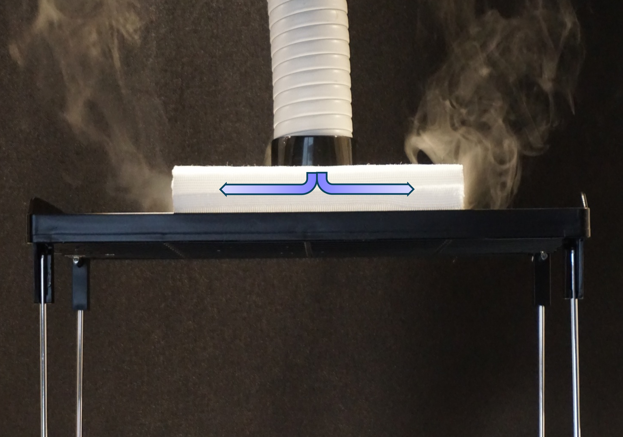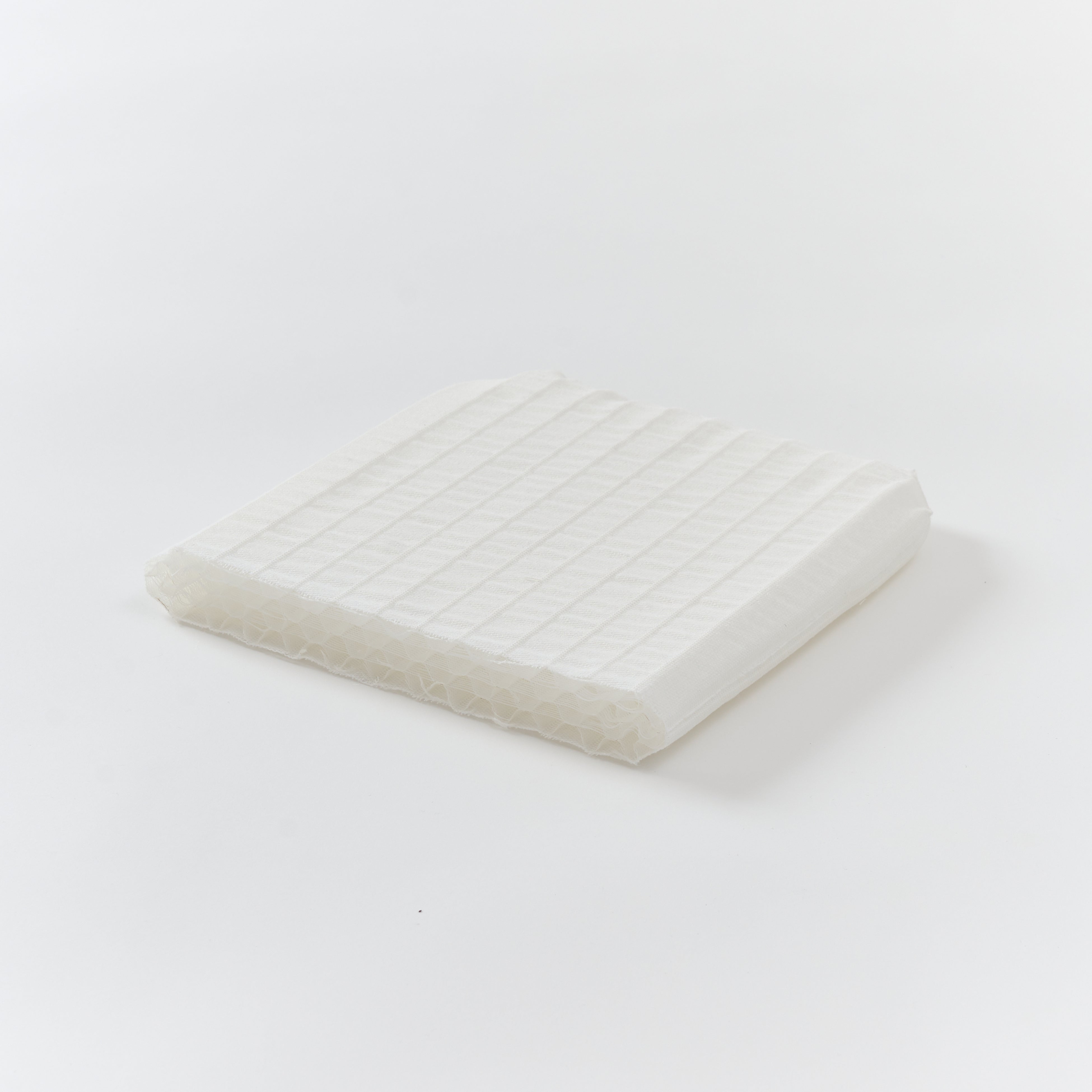 多層織物クッション材は、横方向がトンネル構造の為、空気が水平方向に流れ、通気性に優れます。