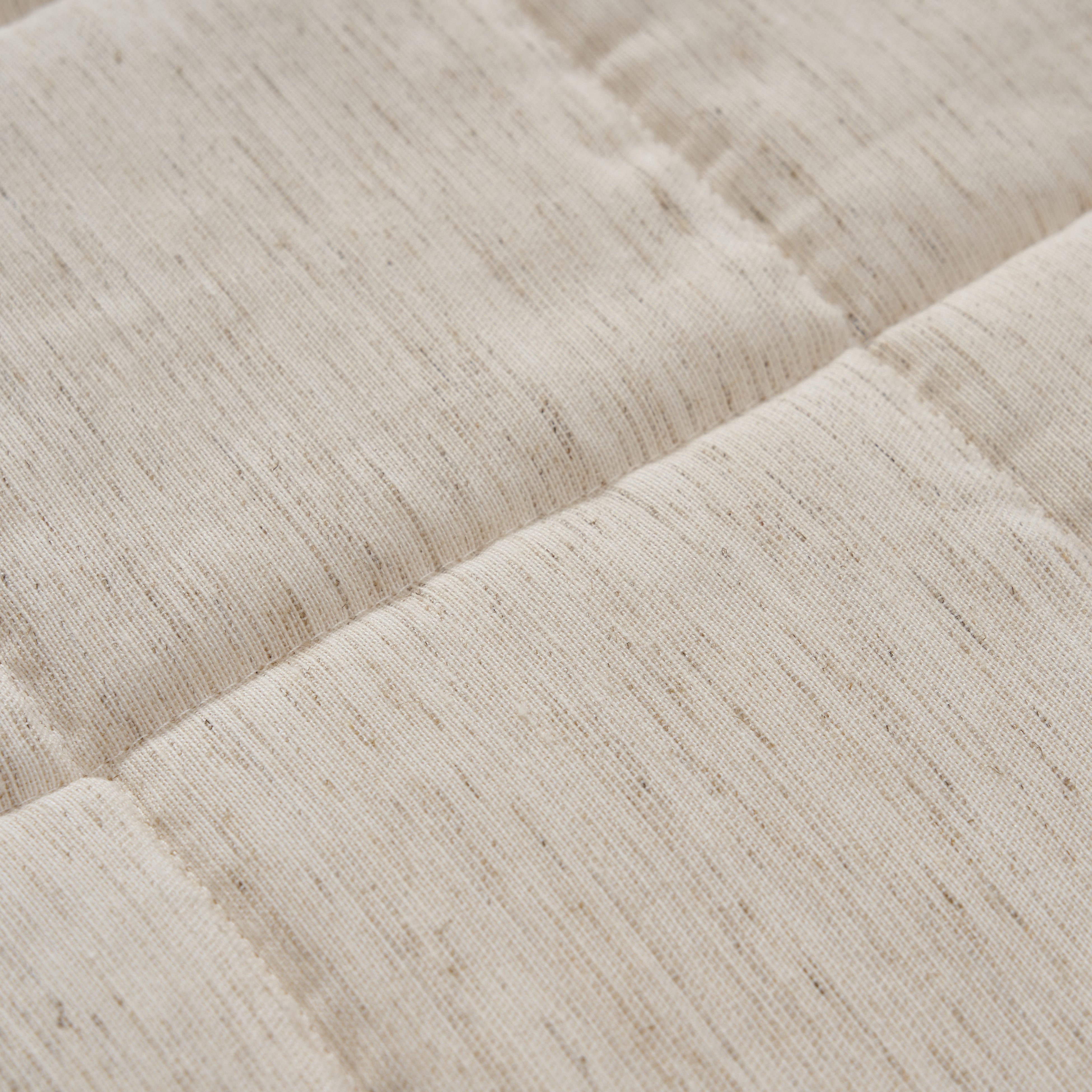 ウールの調湿機能を最大限に引き出すため、肌に触れる面のカバー生地には滋賀県高島市の織物職人と共同開発した特注の綿100%二重ガーゼ生地を採用しました。