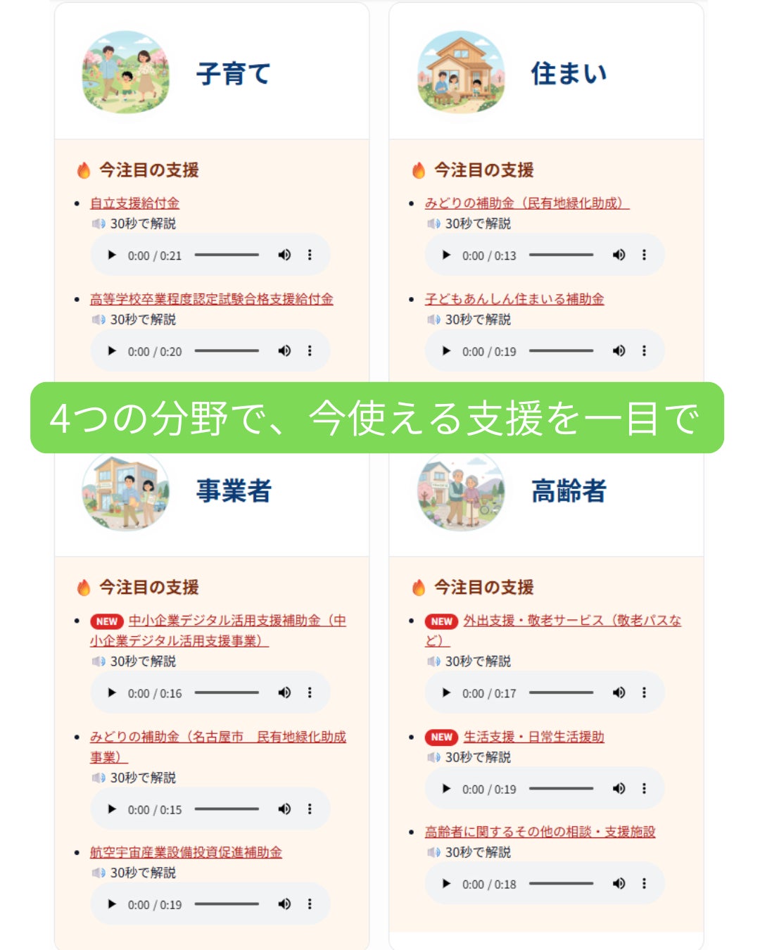 さらに、各制度に「30秒の音声解説」を付けることで、