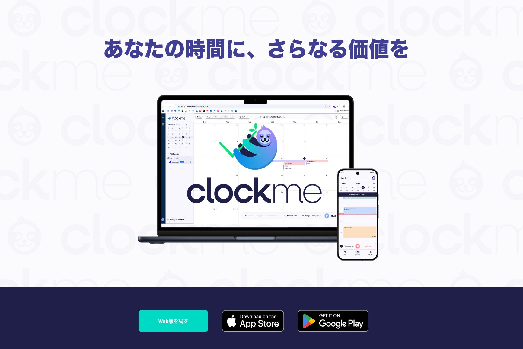 1つ目は、カレンダー形式により時間の使い方を直感的な情報として可視化した、誰もが自然に使えるタイムトラッキングツール「Clock me(クロックミー)」。複雑な操作や入力を前提とせず、日常の延長として時間を捉えられる設計により、「時間を管理する」のではなく、「時間を見える化する」体験を提供します。