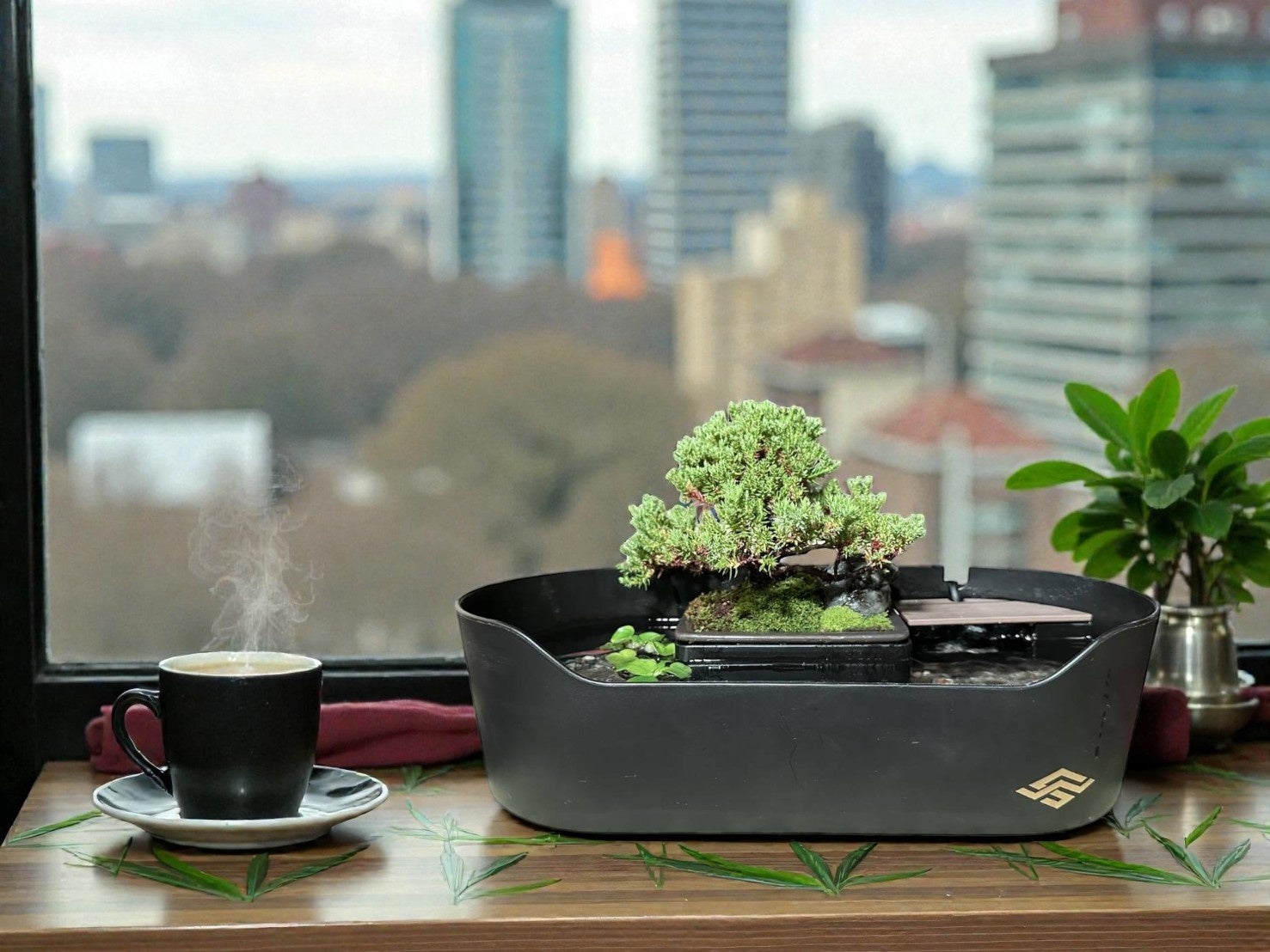 侘水景にセットして楽しめる専用ミニ盆栽。コンパクトながら花もの盆栽の魅力を味わえ、侘水景の世界観に自然な彩りと季節感を添えます。盆栽に馴染みのない方でも取り入れやすく、ひとつのミニ盆栽としても楽しめますが、侘水景と組み合わせることで より豊かな小さな自然を楽しめます。